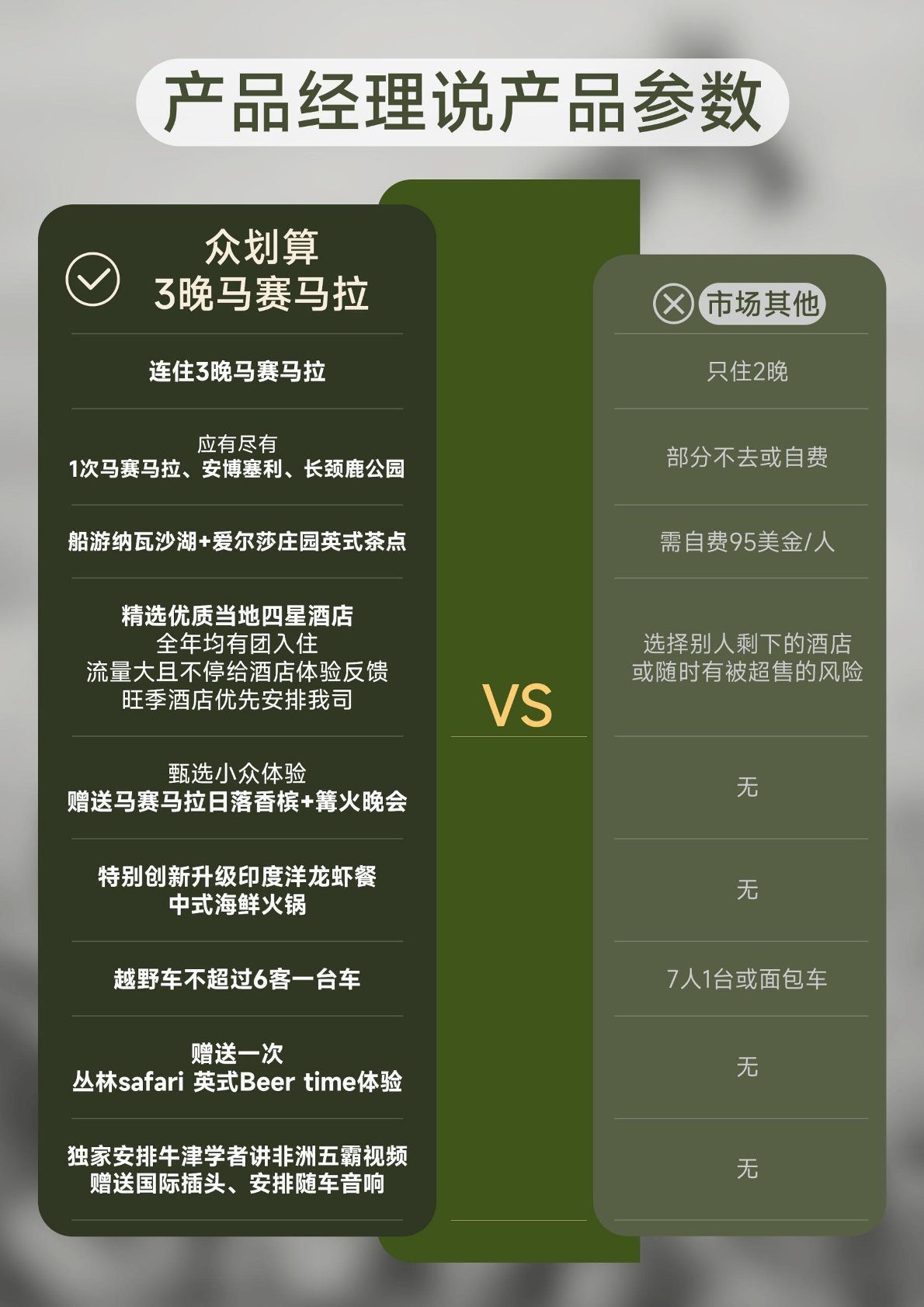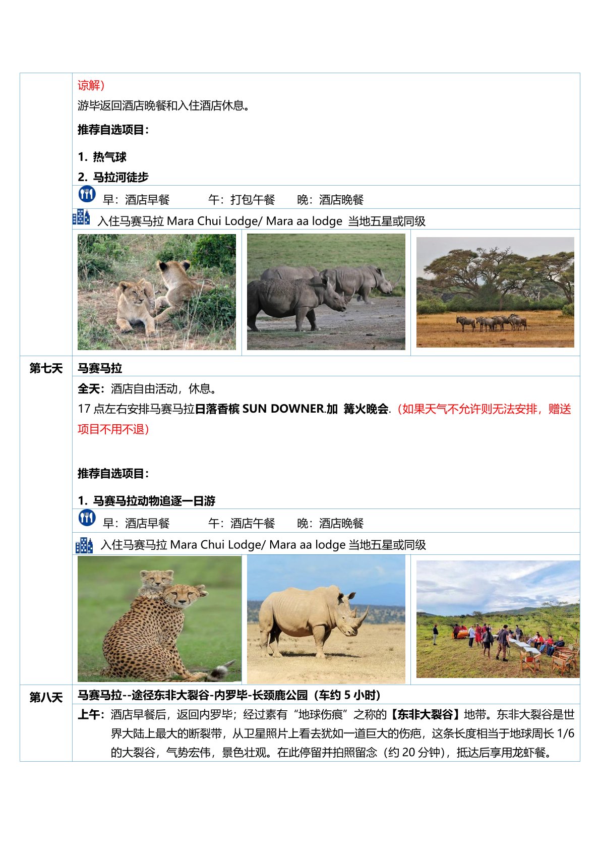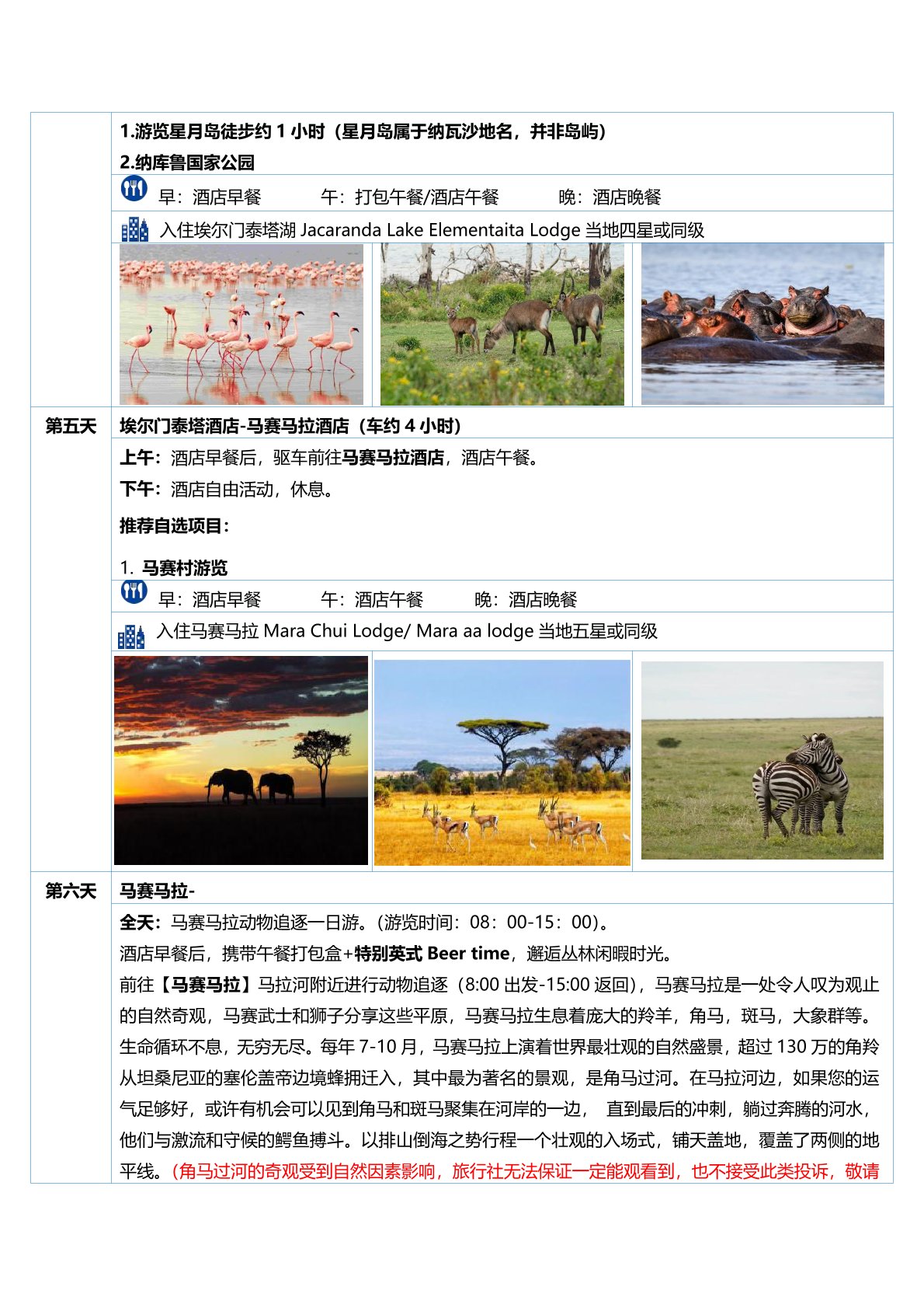 l 中(zhōng)式火鍋餐&龍蝦餐+酒(jiǔ)店自助餐l 贈(zèng)送酒店日落香檳+篝火(huǒ)晚(wǎn)會l 馬賽馬拉追(zhuī)逐非洲五霸