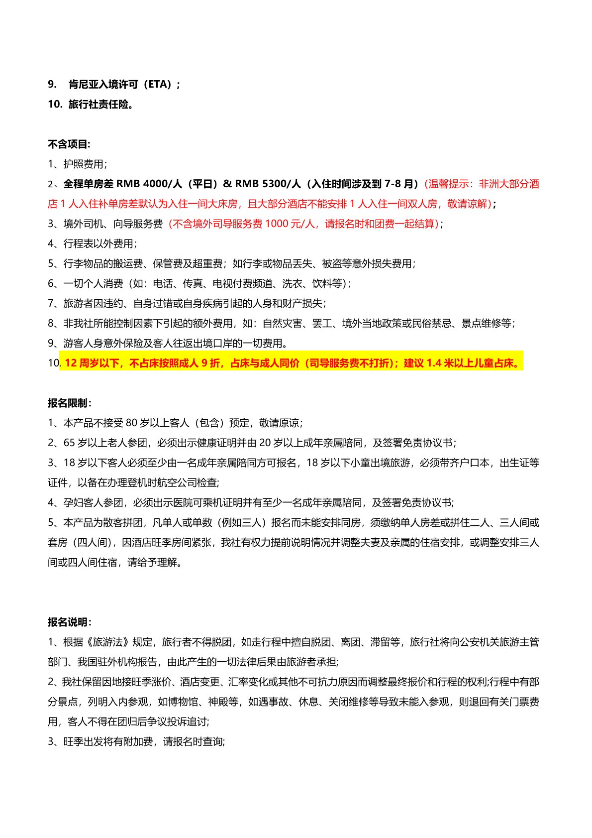 2、全程單房差 RMB 4000/人(平日)& RMB 5300/人(入住(zhù)時間涉及到 7-8 月)(溫馨提示:非(fēi)洲大部分酒