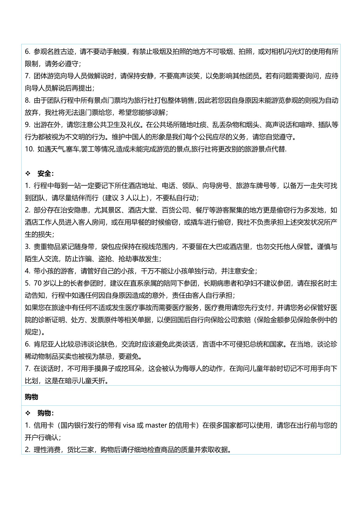 8、非我社所(suǒ)能控製因素(sù)下引起的(de)額(é)外費用,如:自(zì)然災(zāi)害、罷工、境外當地政(zhèng)策或民俗(sú)禁忌、景點維修等;