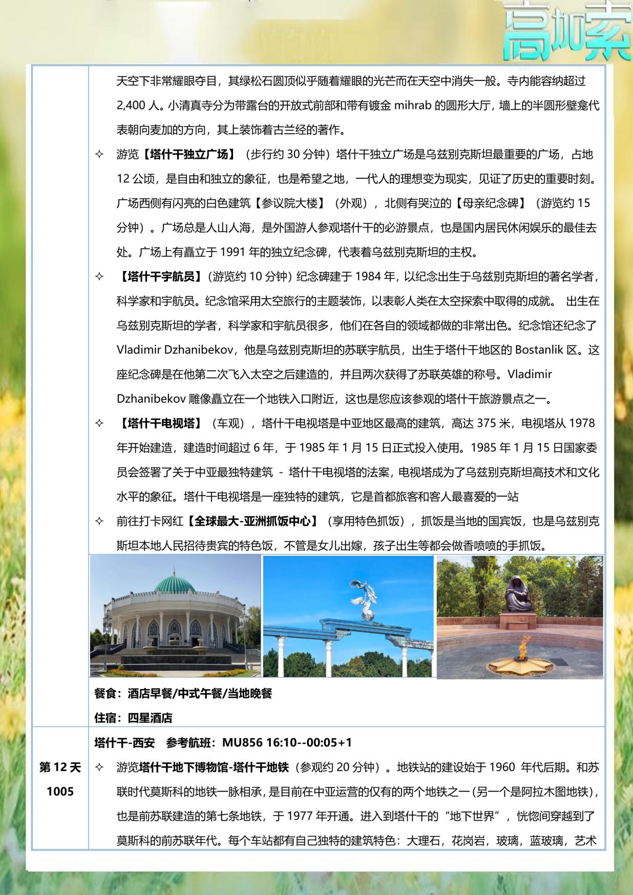 n 用餐標準:早餐均為酒店自助;行程中所列正餐為當地(dì)餐或(huò)中式團隊餐(cān),如果不用餐或因個人原因超出用餐時間到達(dá)餐廳的,不再另補且費用不退。