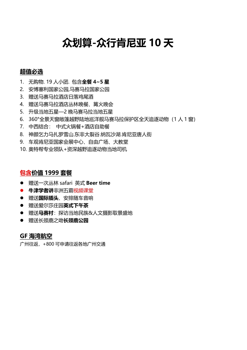 3、境外司機、向導服務費、肯(kěn)尼(ní)亞電子旅行授權(quán)(ETA)(不含境(jìng)外司導(dǎo)服務費1700元/人及肯尼亞入境電子許可300元/人,請報名時和(hé)團費一起結算);