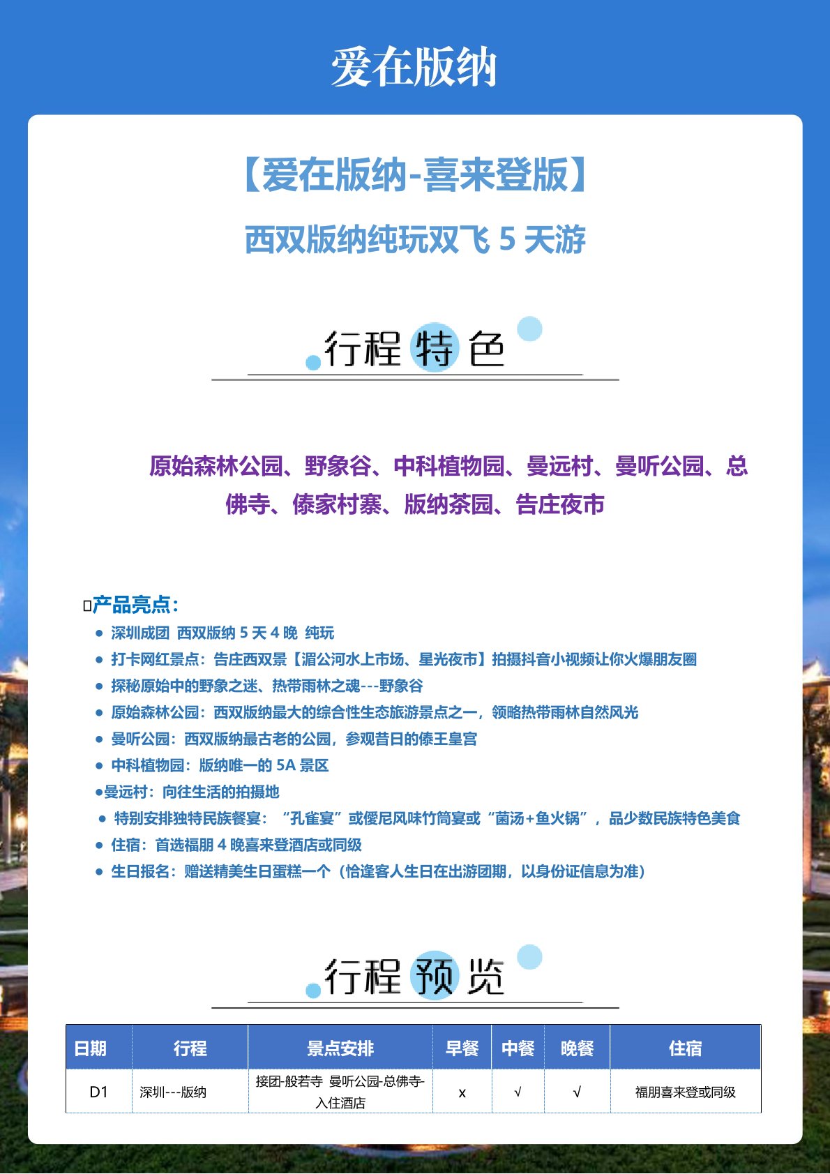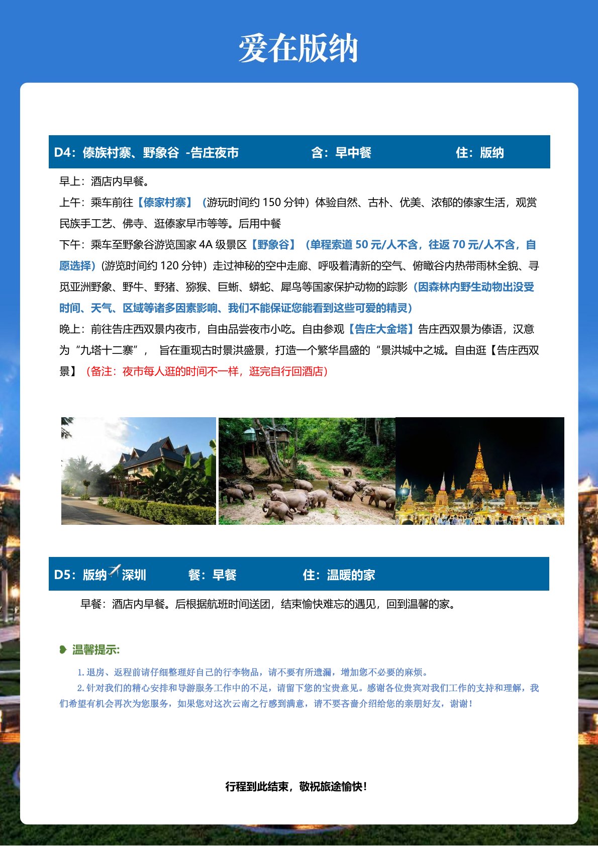 4、用 餐:含4早6正,40元/人/餐,2個特(tè)色餐50元/人/餐,所有(yǒu)正餐不用不退;