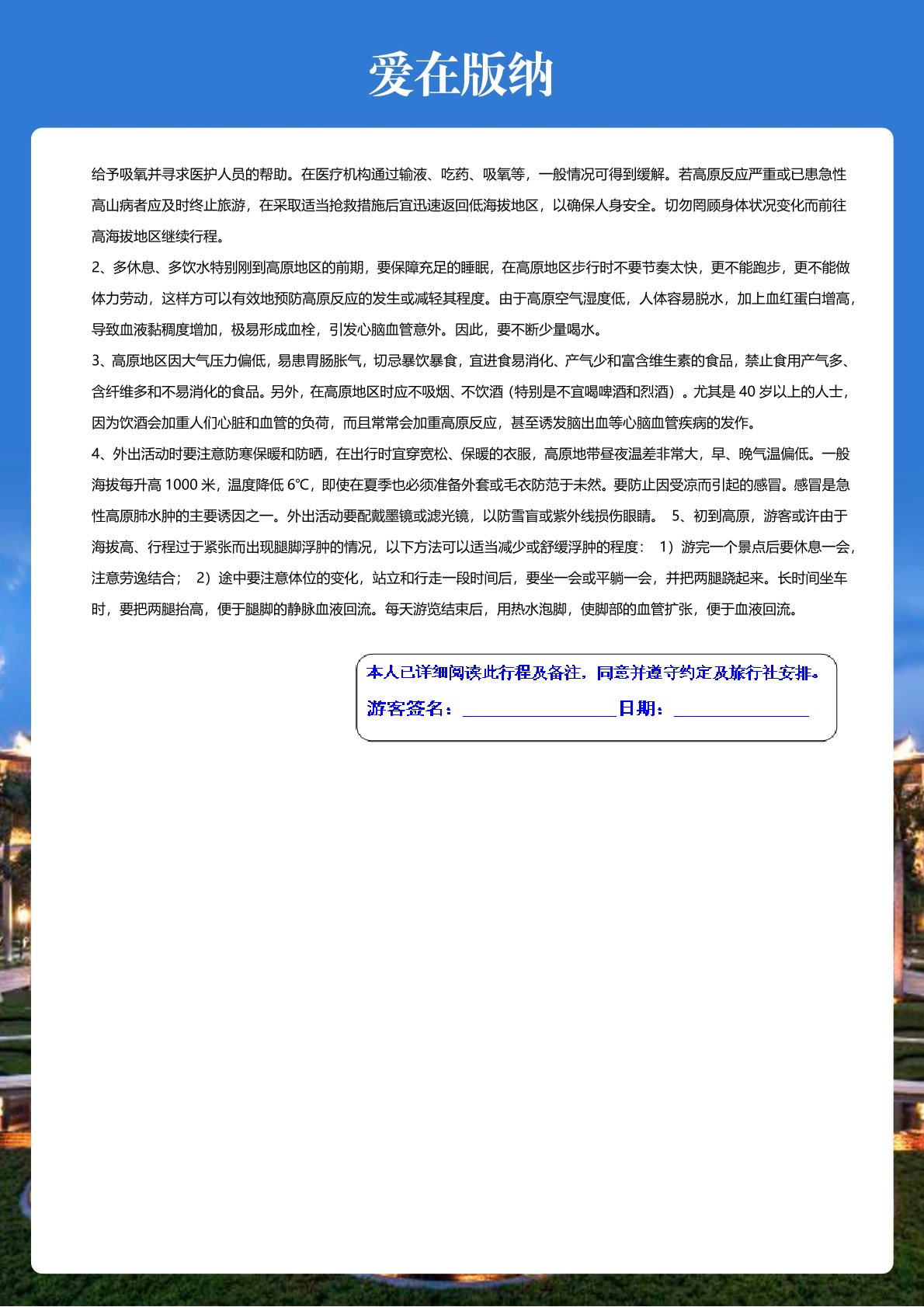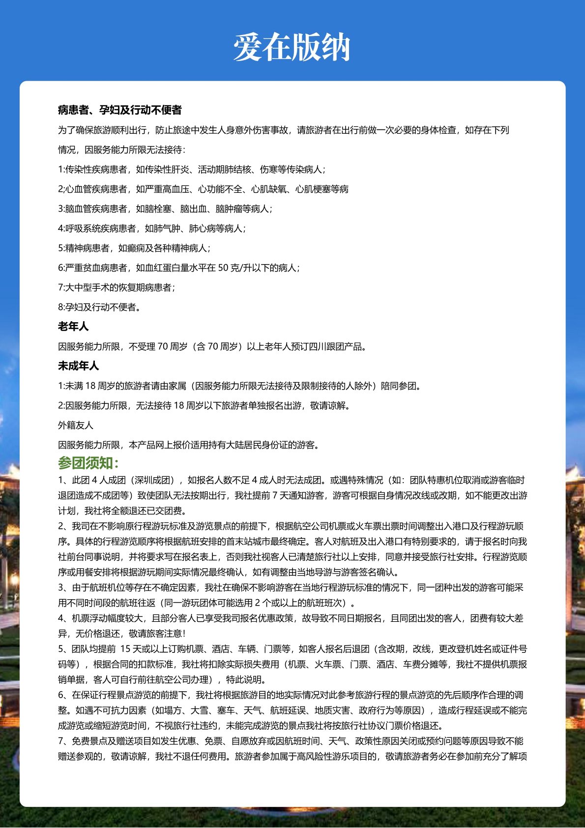 5、不含旅遊意外(wài)險(建議客人自己購買)