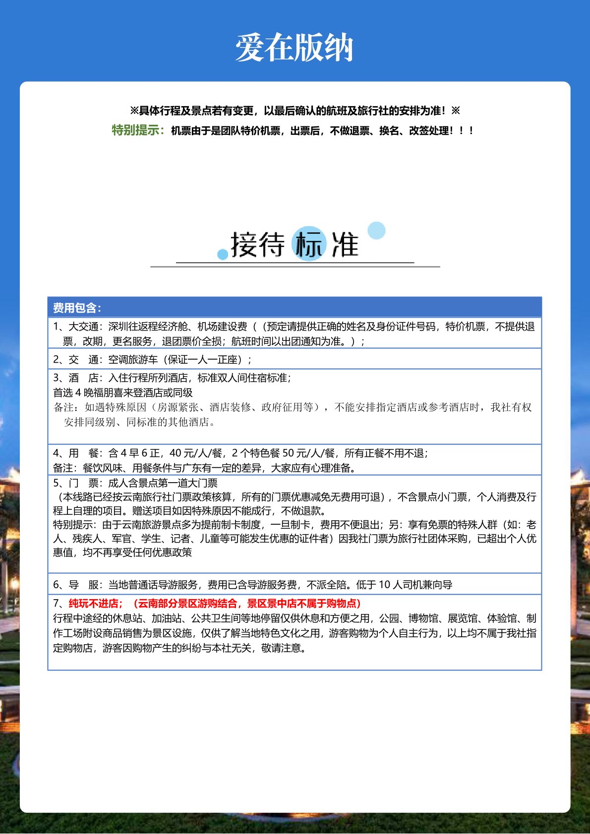 7、純玩不進店;(雲南部分景區遊購結合,景區景中店不屬於購物點)