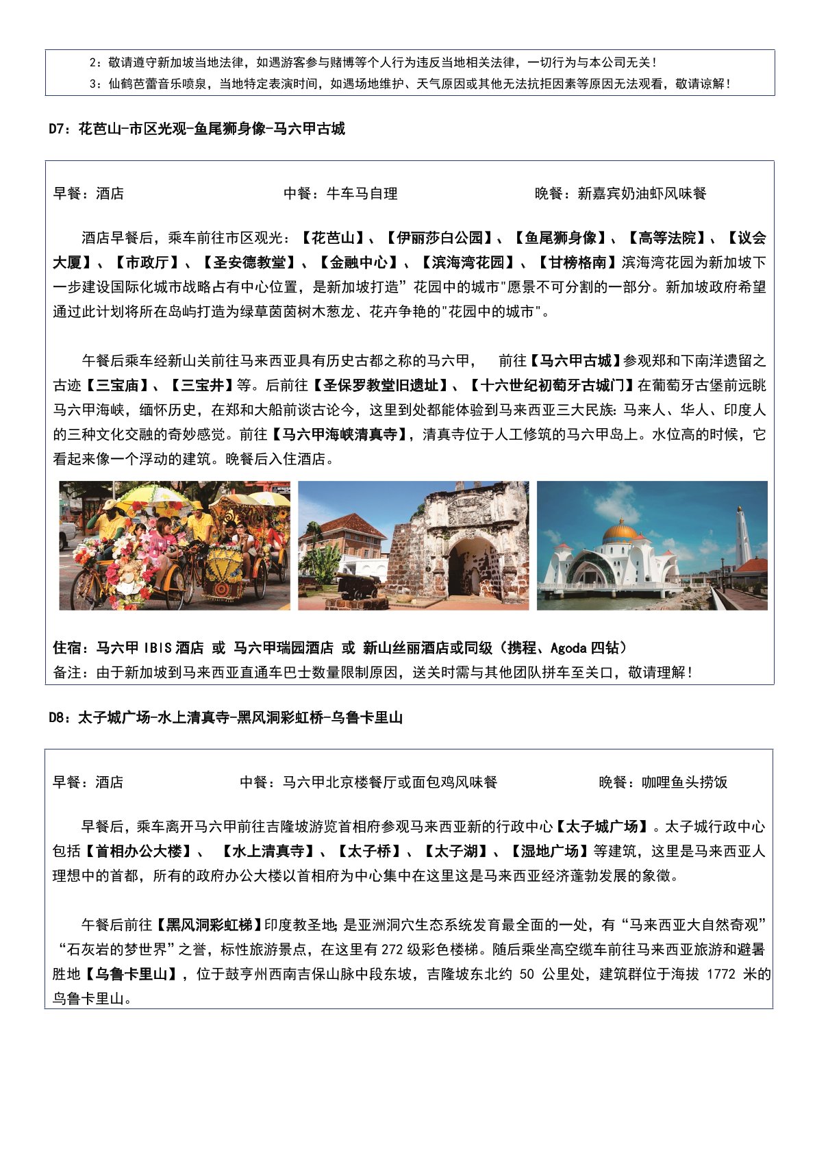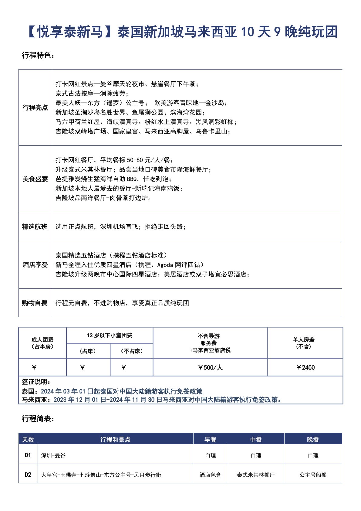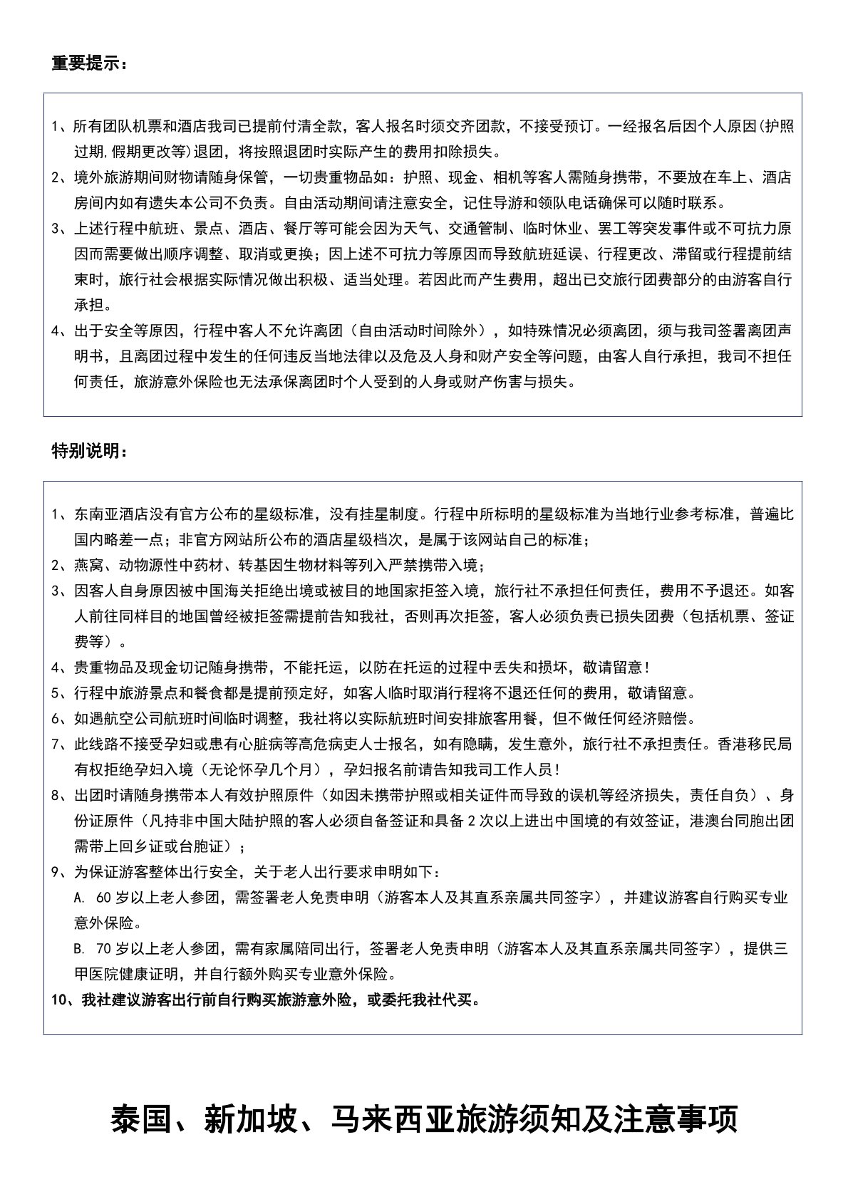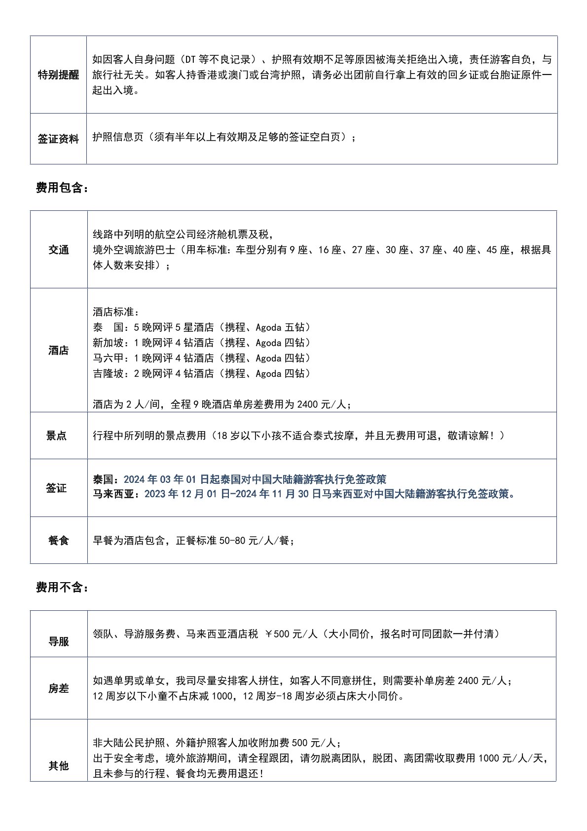 領隊、導遊服務費、馬來西亞酒店稅 ¥500元/人(大小同價,報名時可同團款一並付清)
