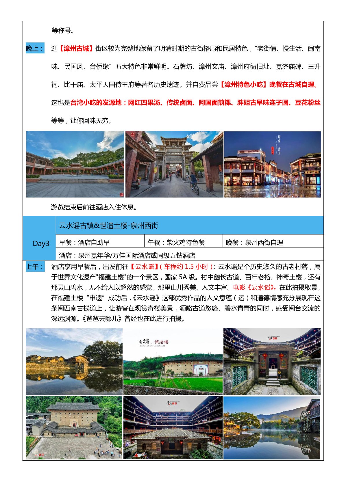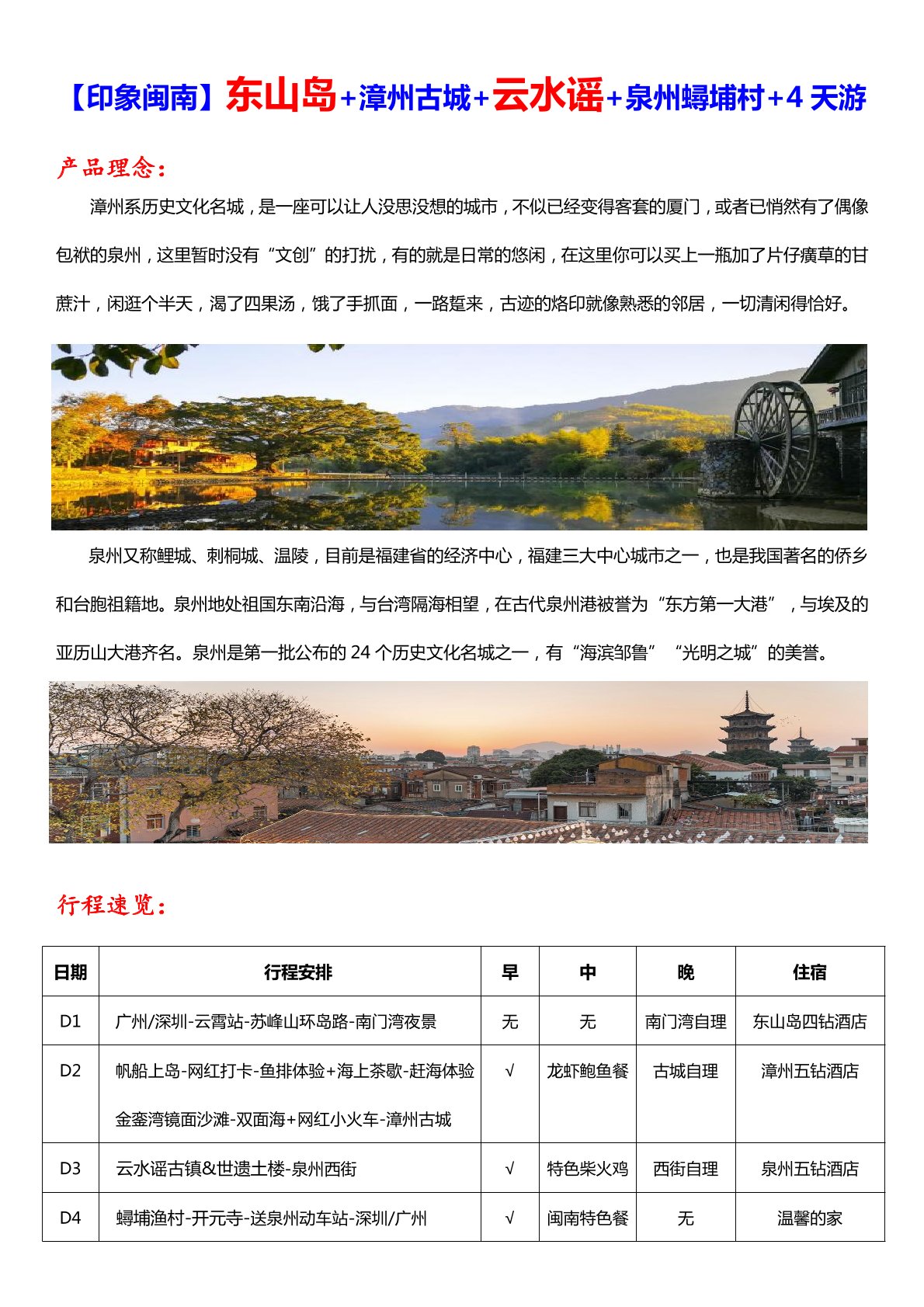 住宿標準 酒店:1 晚東山品質 4 鑽酒店+1 晚漳州五鑽酒店+1 晚泉州五鑽酒店=單房差 650 元/人