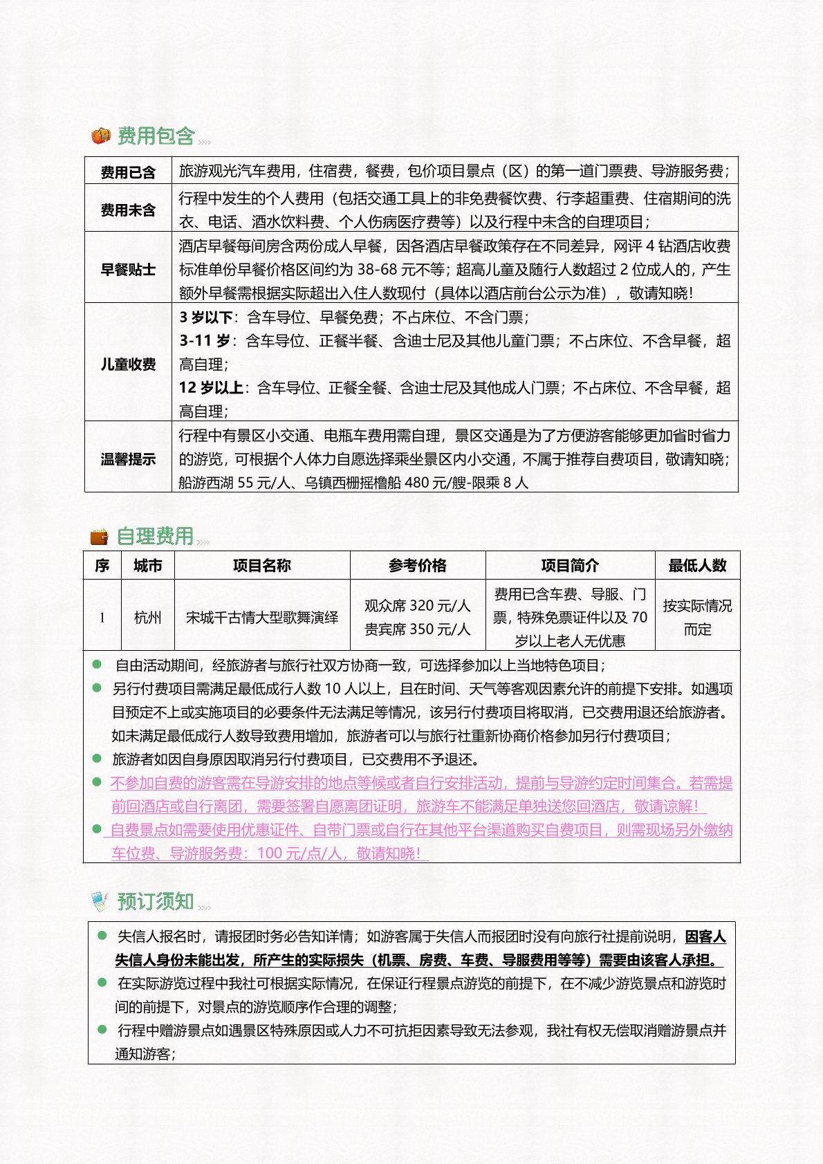 費用已含 旅遊觀光汽車費用,住宿費(fèi),餐費(fèi),包價項目景點(區)的第(dì)一道門票(piào)費、導遊服務費;