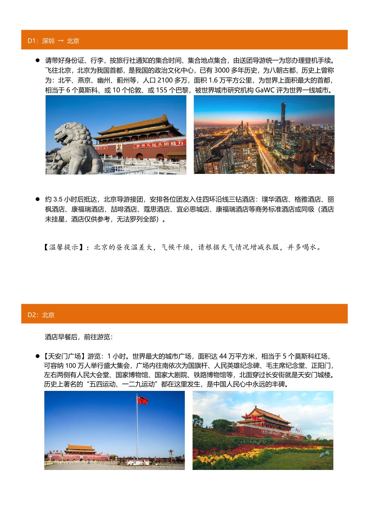 導遊 含:深圳送團導遊(不隨(suí)團)、北京地接導遊,不派全陪導遊。