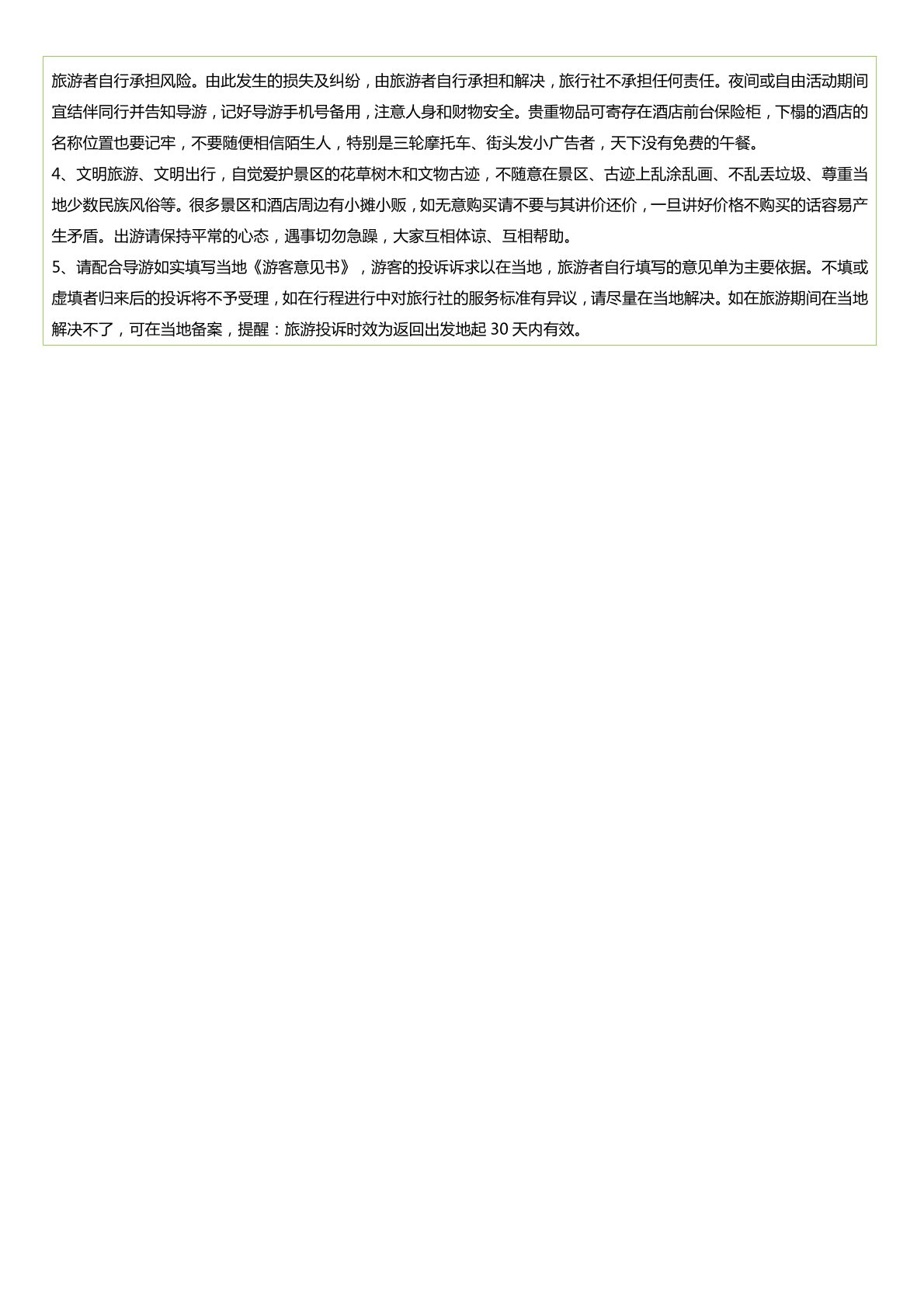 4.個人(rén)的一切消費(如洗衣費,電話費,自行購物,行李超額托運費,以及其他未提及的服務費);