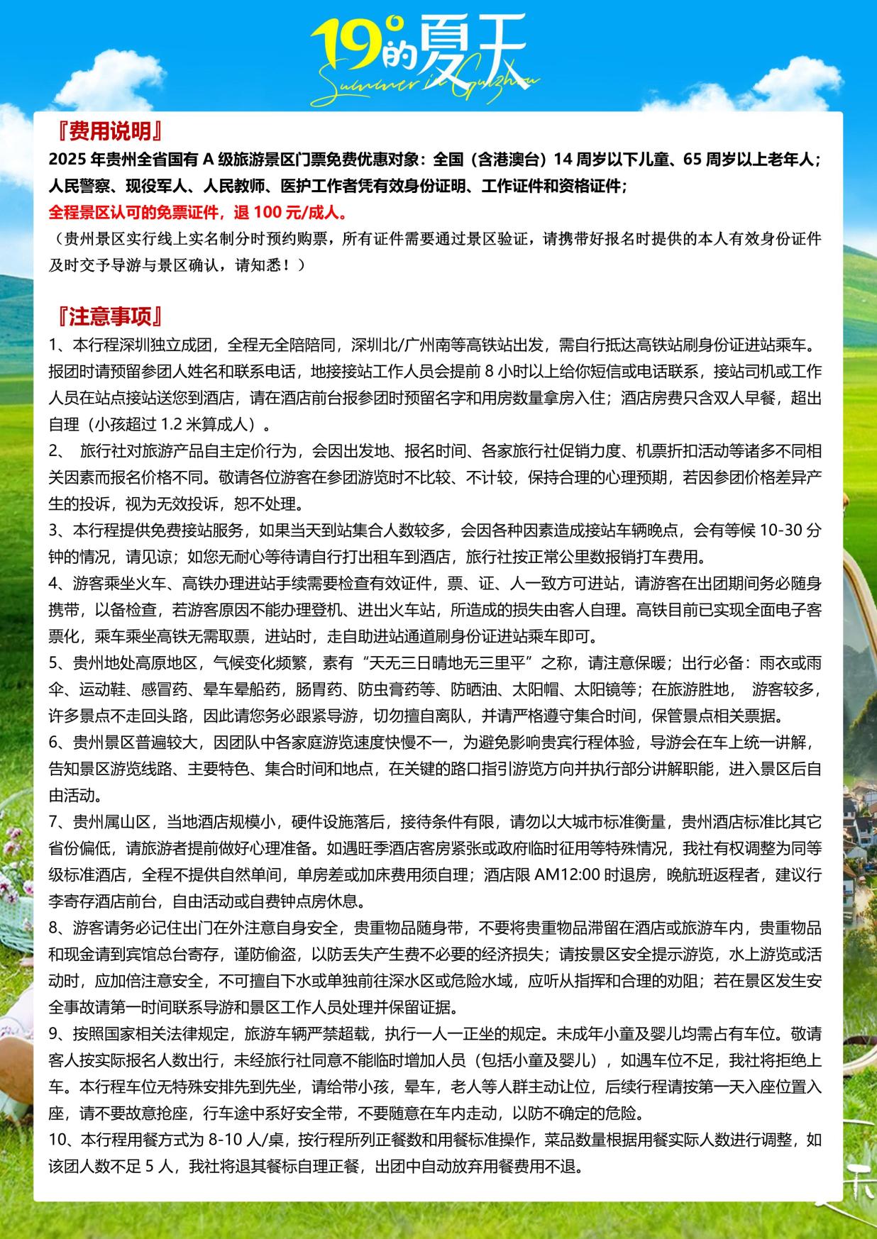 3、交通:深圳北-貴陽北/東往返直達或中轉二等座,當地(dì)空調旅遊巴士,25 人(rén)左(zuǒ)右精品團