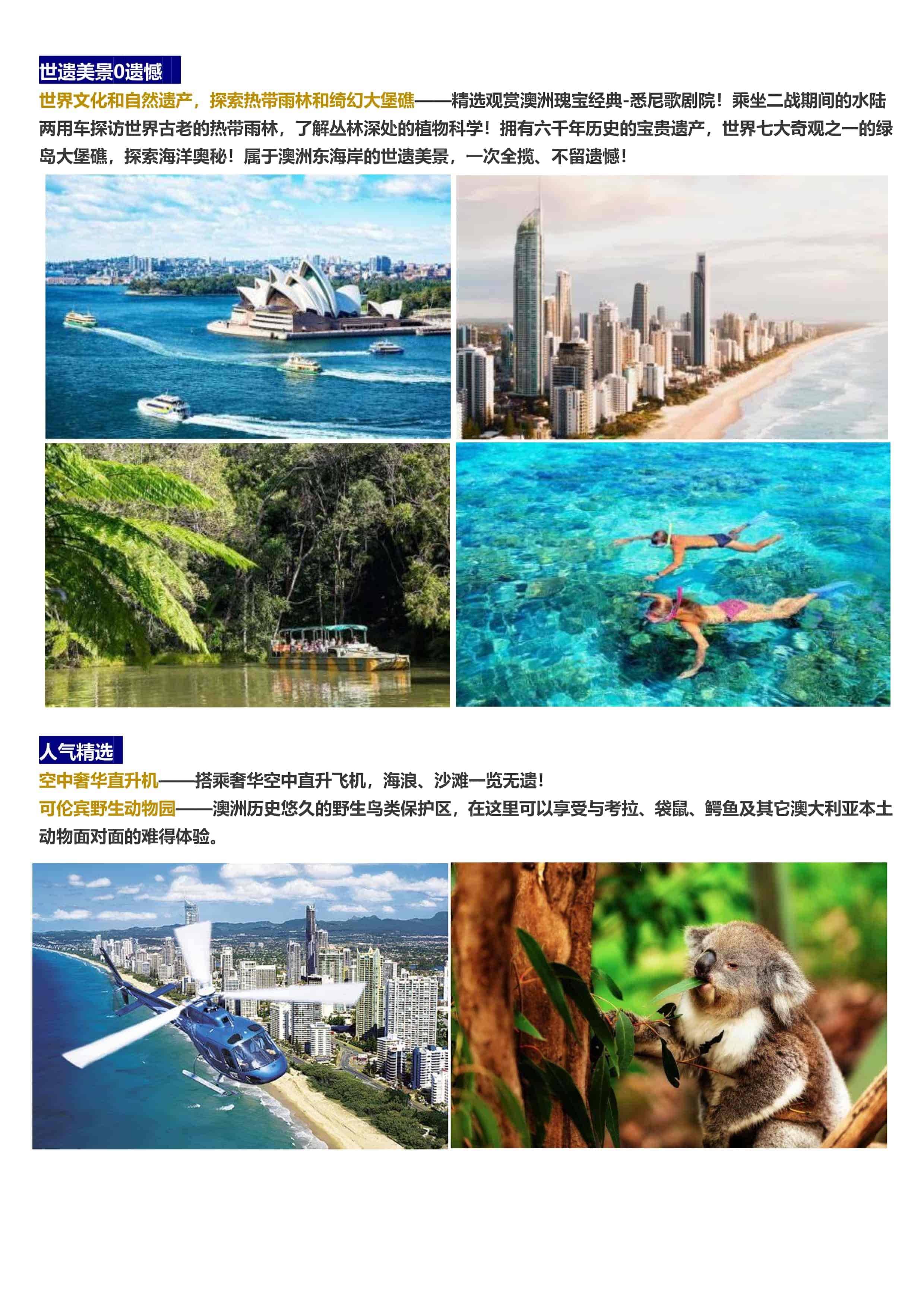 D3 | 黃金海岸 | 直升機巡遊(約5分鍾)、可倫(lún)賓野生動物園、伯利角國家公(gōng)園 | 早餐:酒店早餐午(wǔ)餐:園內自理 晚餐:中式八菜一湯 | 布裏斯班(bān)或黃金海岸當地4星(xīng)酒(jiǔ)店 或公(gōng)寓 |