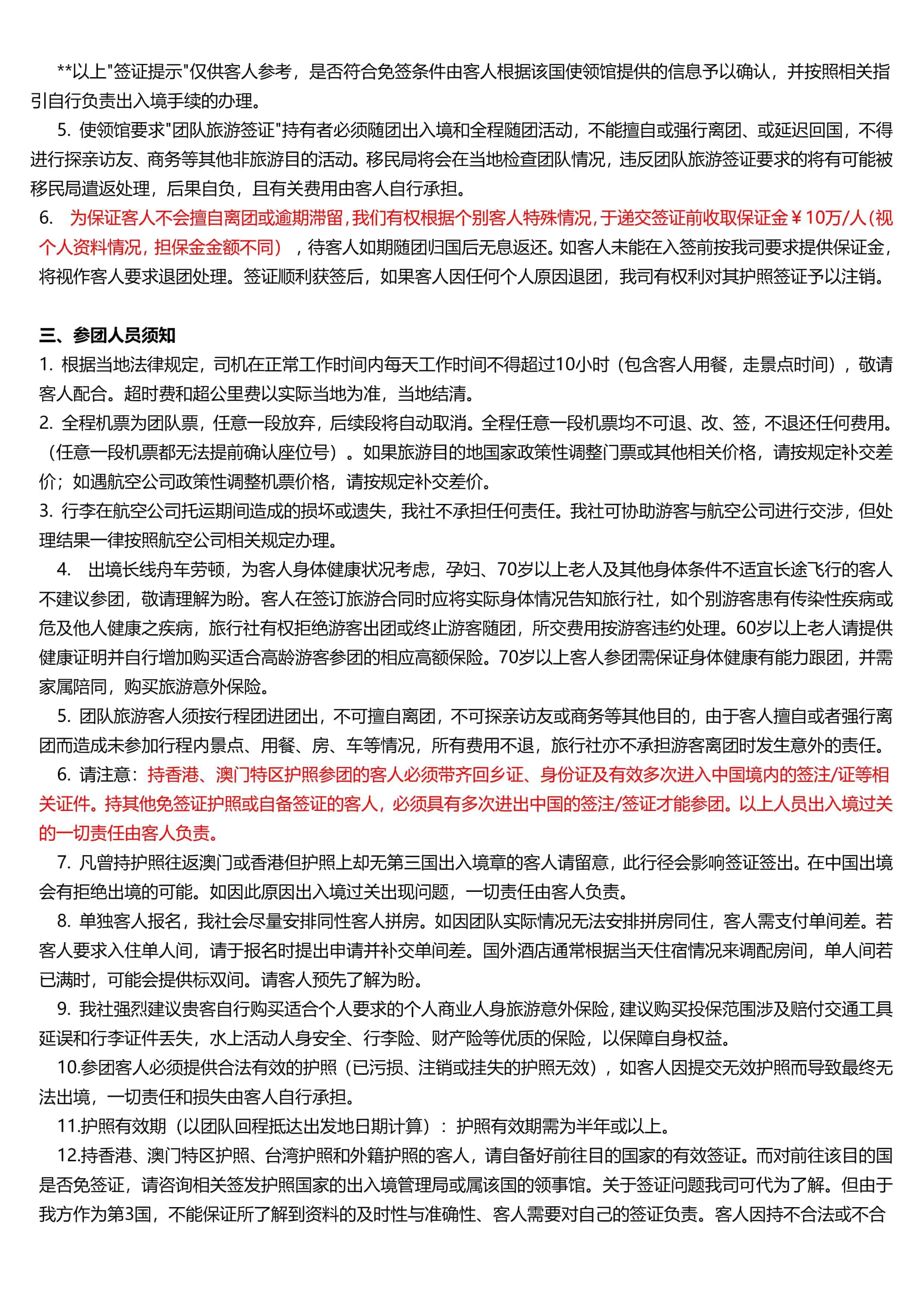 三、參團人員(yuán)須知