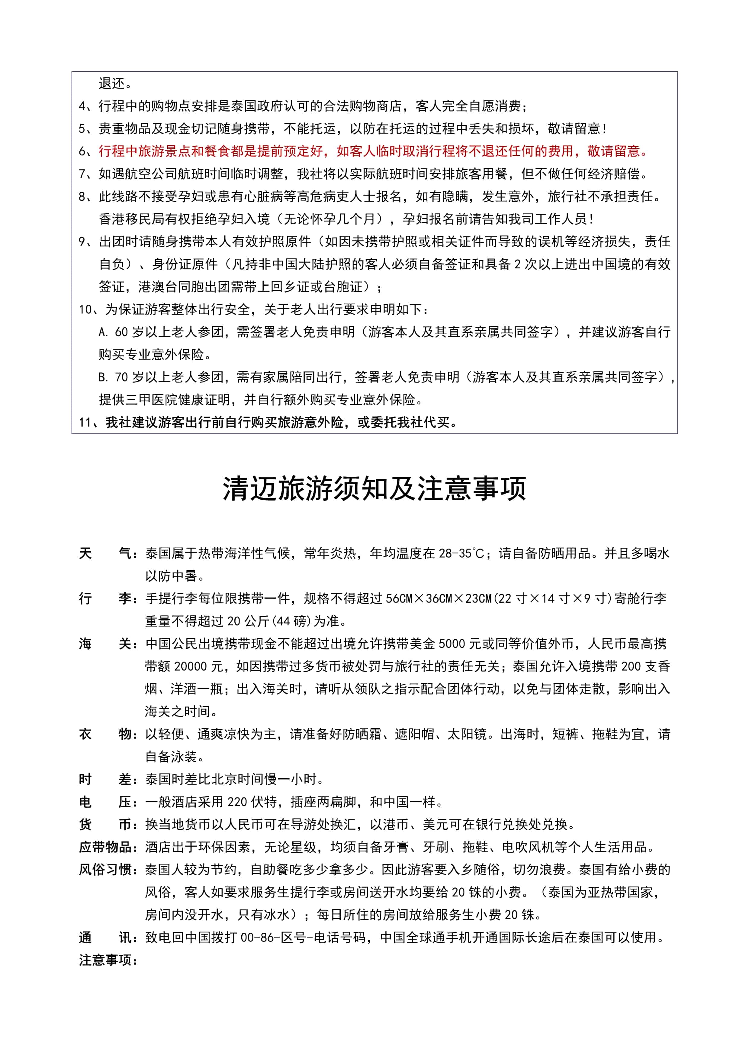 10、泰國機場移民局對持有旅遊簽證(zhèng)或落地簽證的入境遊(yóu)客要求最少攜帶人民幣 2000 元或等(děng)值美金,並對入境者進行隨意抽查,請遊客隨身備(bèi)好現金(jīn);我公司盡到(dào)告知(zhī)的職責,如遇有抽查而不能入境者,我公司(sī)不承擔任何責任;