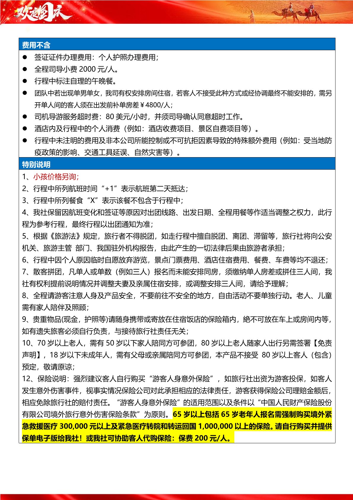 行程中未注明(míng)的費用及非(fēi)本(běn)公司所能控製或不可抗拒因素導致的特殊額外費用(例如:受(shòu)當地防