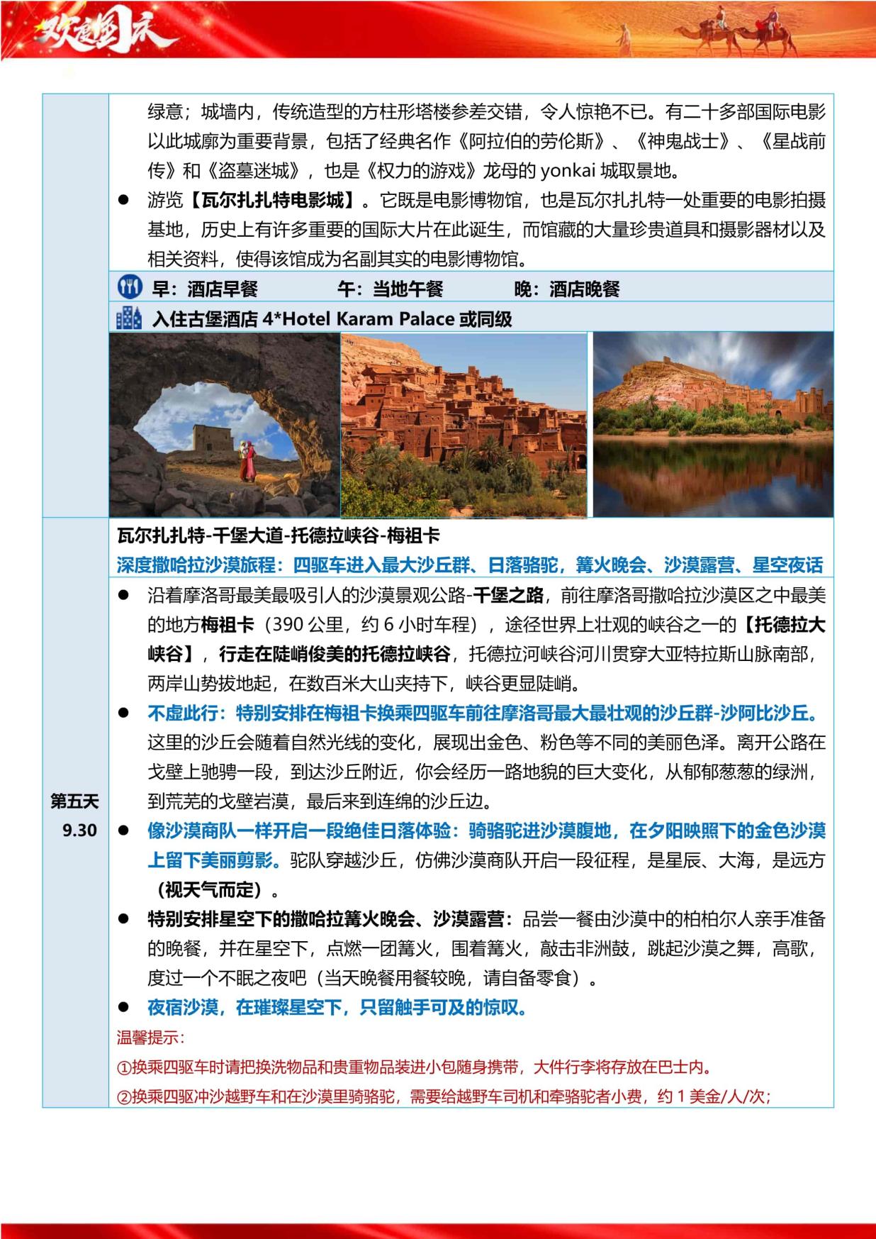 第五天(tiān)9.30 | 瓦爾(ěr)紮紮特-千堡大道-托德拉(lā)峽穀-梅祖卡 深度撒哈拉沙漠旅程:四驅車(chē)進入最大沙丘(qiū)群(qún)、日落駱駝,篝火晚會、沙(shā)漠露營、星空夜話 |
