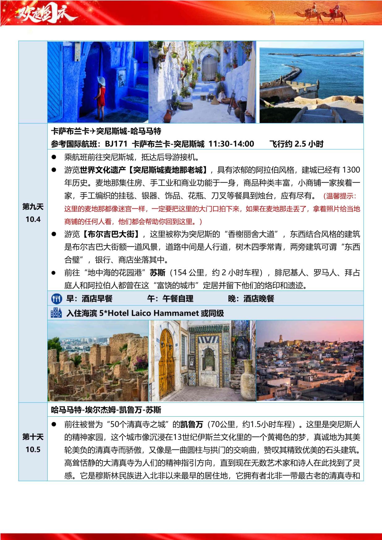 第九天10.4 | 卡薩布蘭卡突尼斯城-哈馬馬特 參考國際航班:BJ171 卡薩布蘭卡-突尼斯城 11:30-14:00 飛(fēi)行約 2.5 小時 |