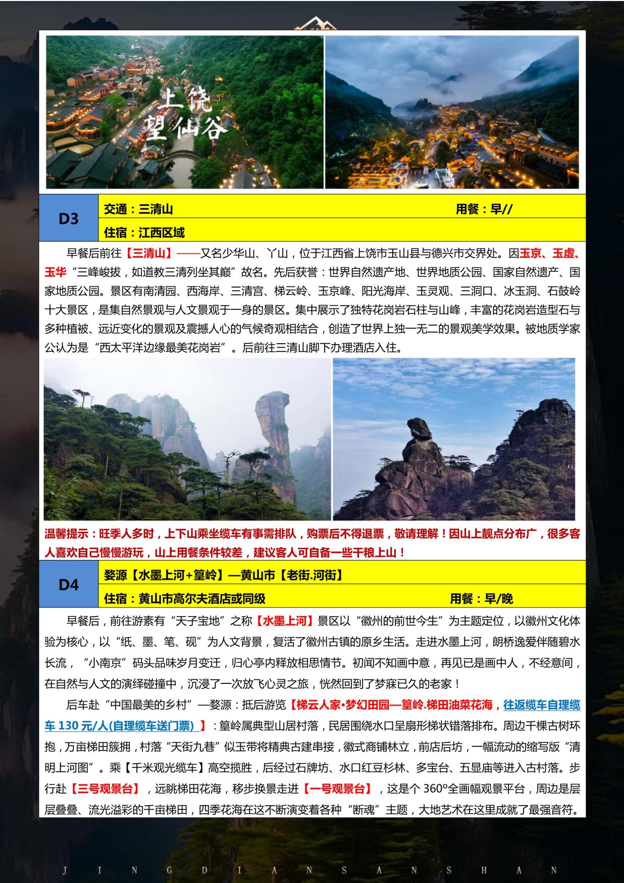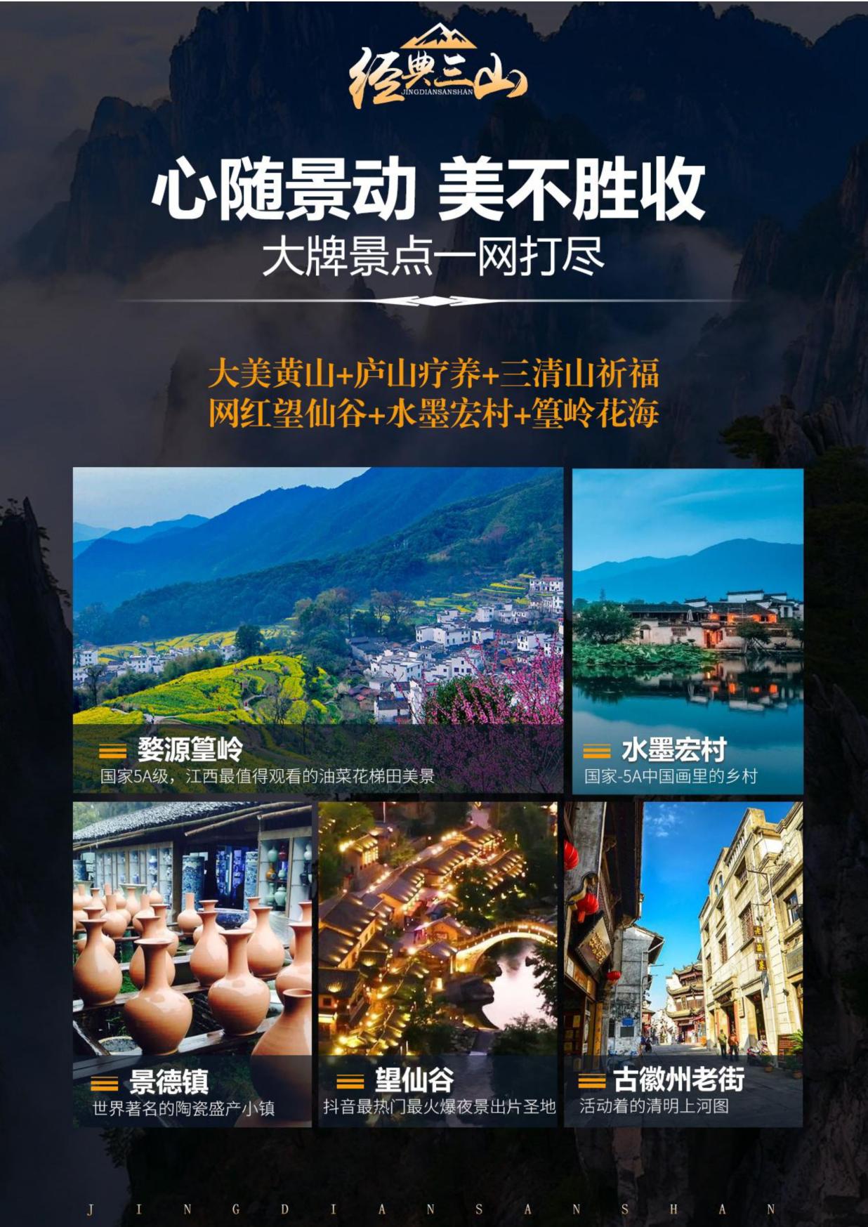 ●道教名山-祈福安康-體驗不一(yī)樣的山(shān)脈建築—“三清山” ●國家-5A 級”“活動著的清明上河圖” —古(gǔ)徽州老街
