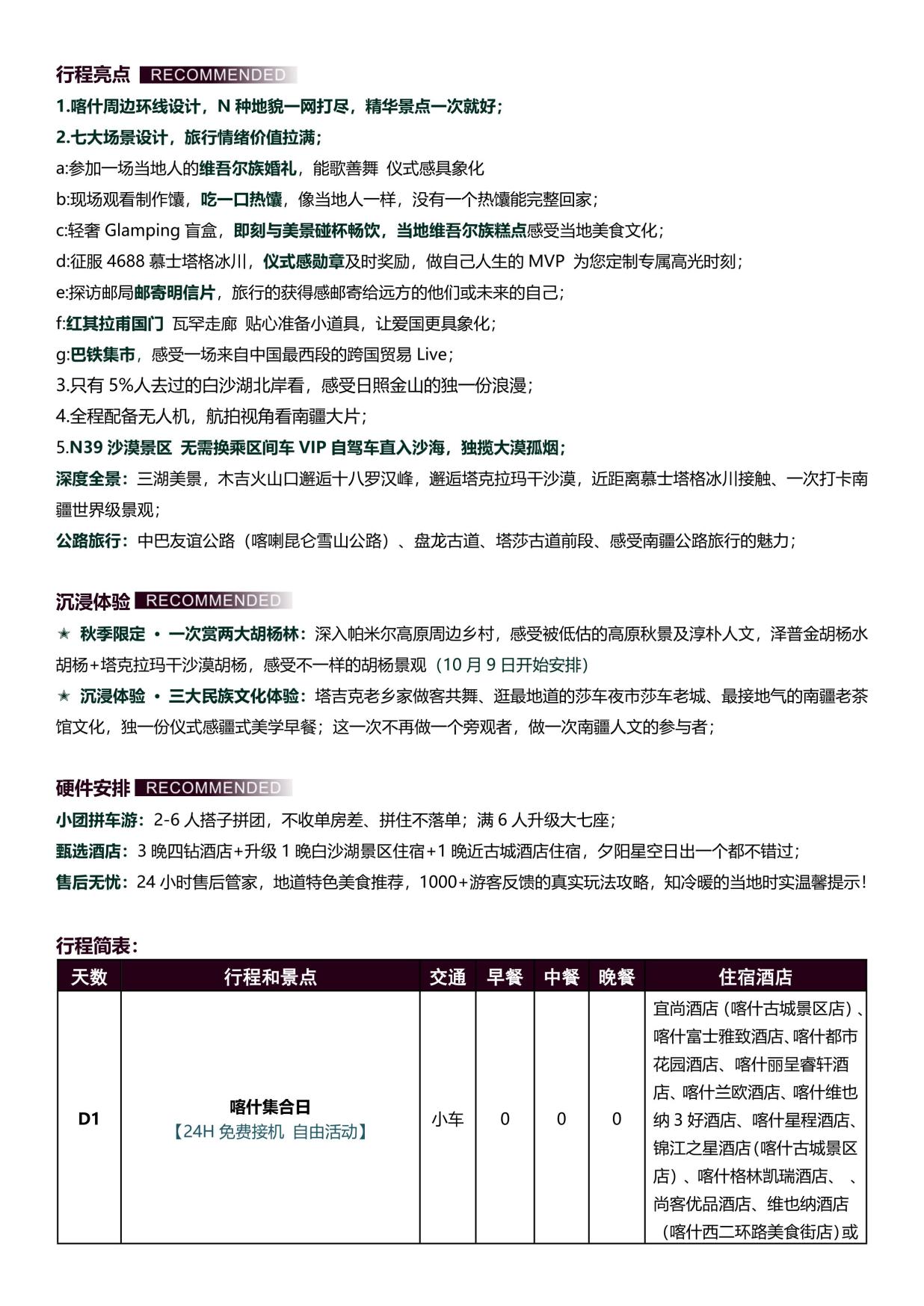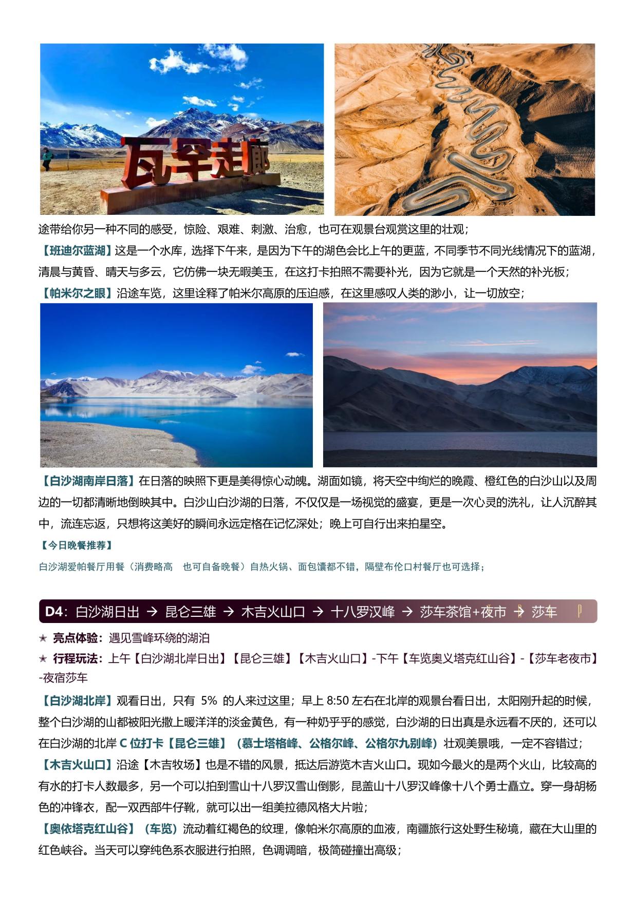 5.N39 沙漠景區 無需換乘區(qū)間車 VIP 自駕車直入(rù)沙(shā)海,獨攬(lǎn)大漠孤(gū)煙; 深度全景:三湖(hú)美景,木(mù)吉火山口(kǒu)邂逅十八羅漢峰,邂逅塔克拉瑪幹沙(shā)漠,近距離慕士塔格冰(bīng)川(chuān)接觸、一次打卡南 疆世(shì)界級景觀; 公路旅行:中巴友誼公路(喀喇昆侖雪山公路)、盤(pán)龍(lóng)古道、塔莎古道前段、感受南疆公路旅行的魅力; 沉浸體(tǐ)驗