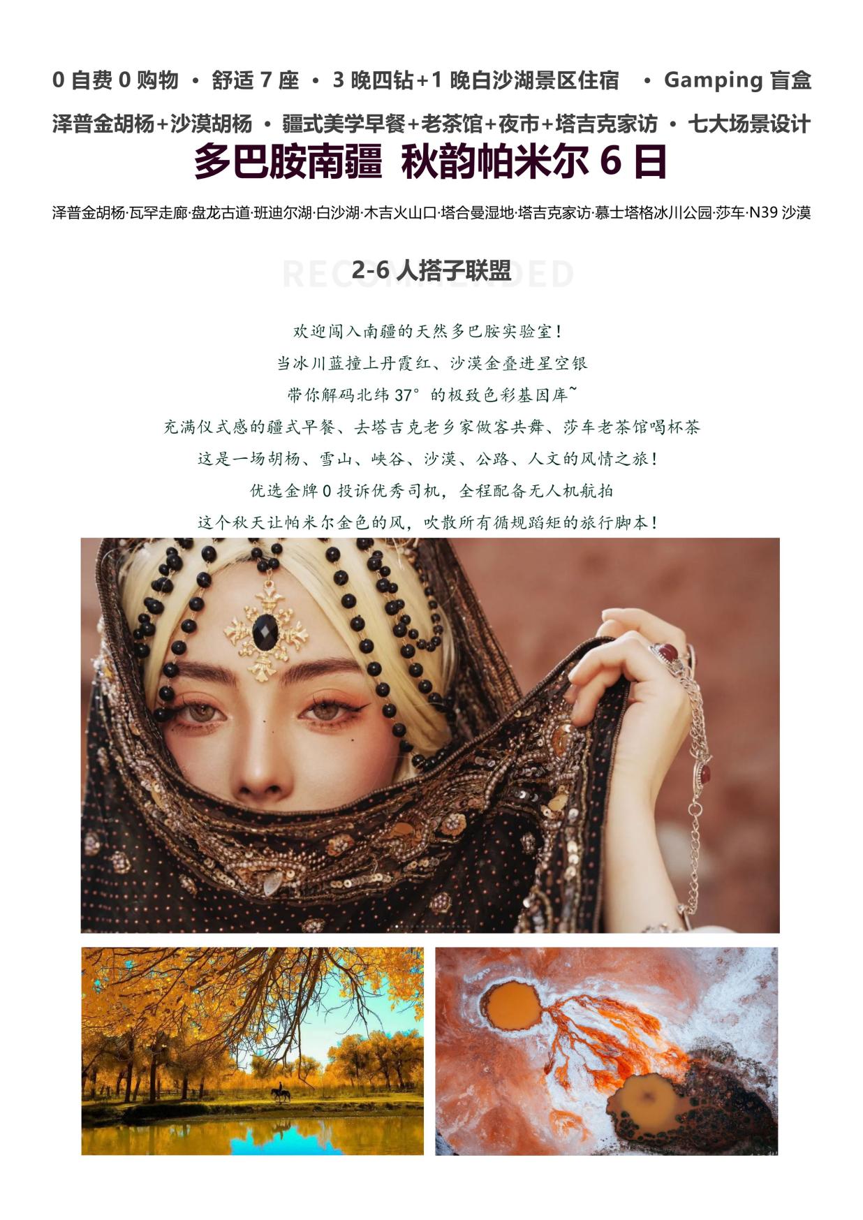 ✭ 秋季限定 · 一次賞兩大胡(hú)楊林(lín):深(shēn)入(rù)帕米爾高原周邊鄉村,感受(shòu)被低估的高原(yuán)秋景及淳樸人文,澤普金胡楊水 胡楊+塔克拉瑪幹沙漠胡(hú)楊,感受不一樣的胡楊景觀(10 月 9 日開始安排)