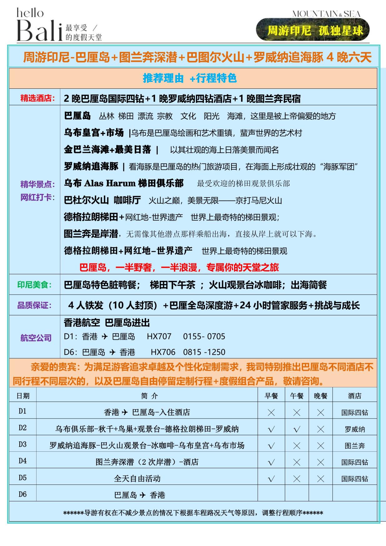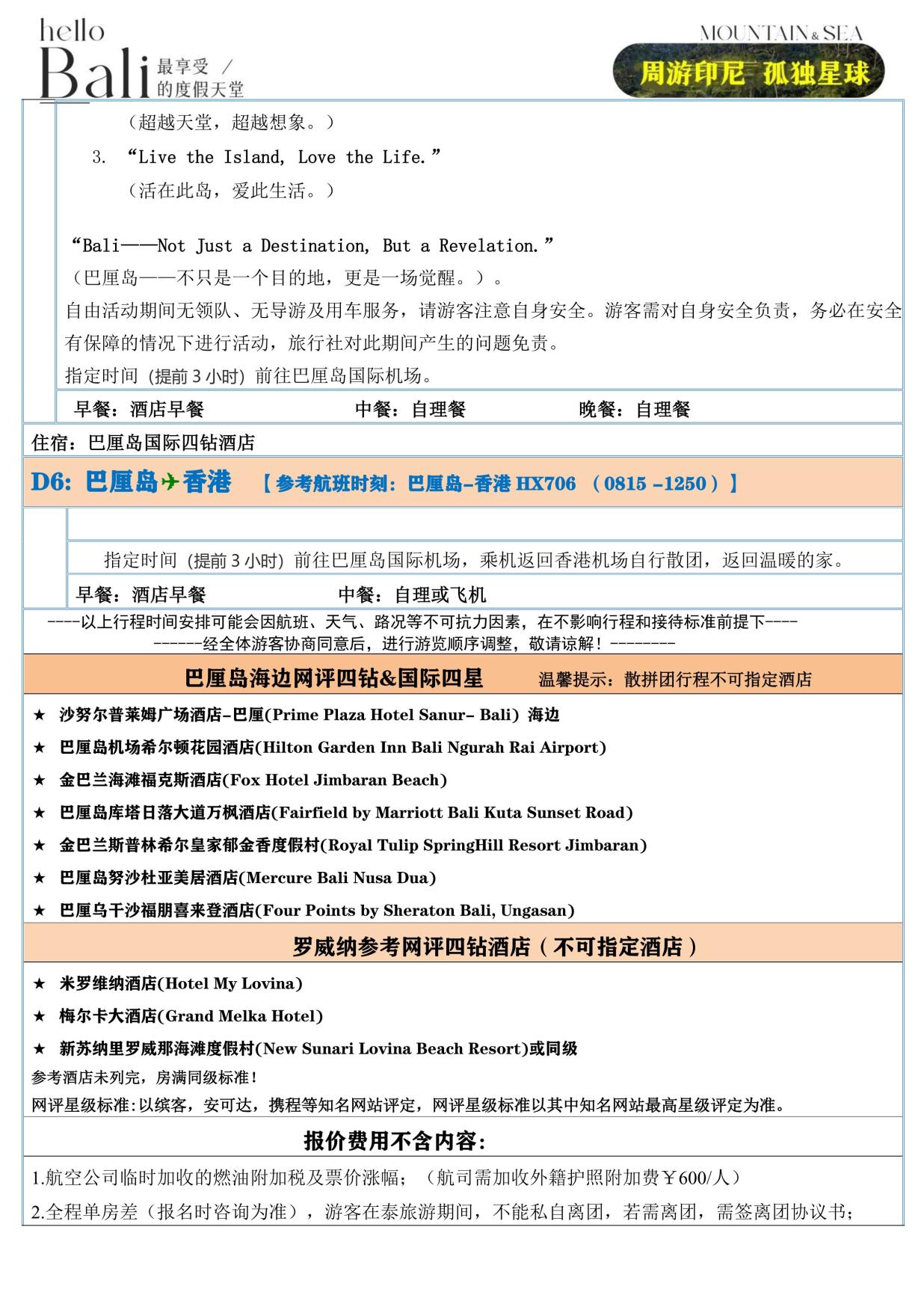 精選(xuǎn)酒店: 2 晚巴厘島國際四鑽+1 晚羅威納四鑽酒店+1 晚圖(tú)兮奔民宿