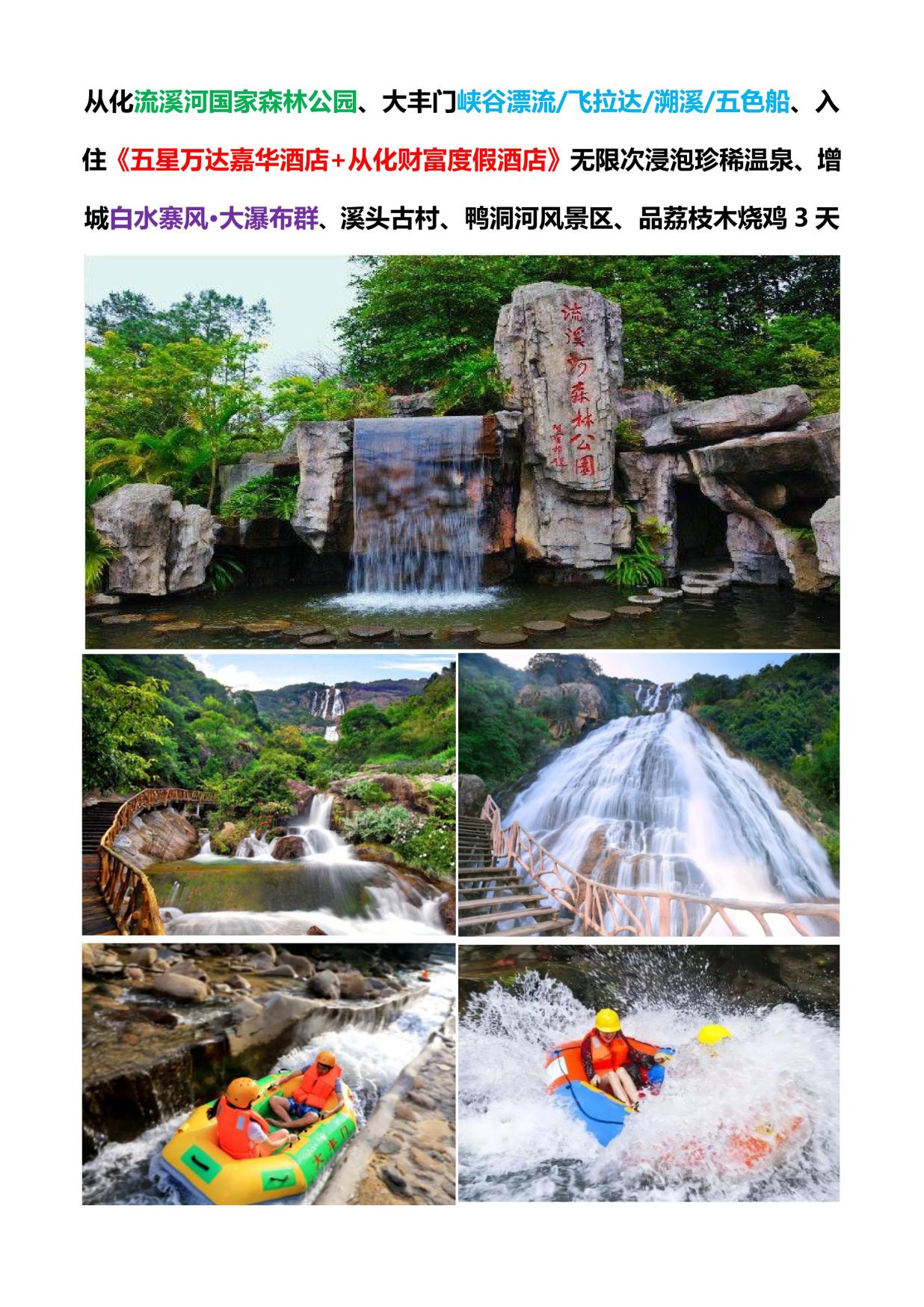國慶[從化3日遊]從化森(sēn)林公園/飛拉達/溯溪/《五星萬達嘉華酒店》浸泡珍稀溫泉、白水寨風·大瀑布、溪頭古村鴨洞河.品燒雞3天999 -