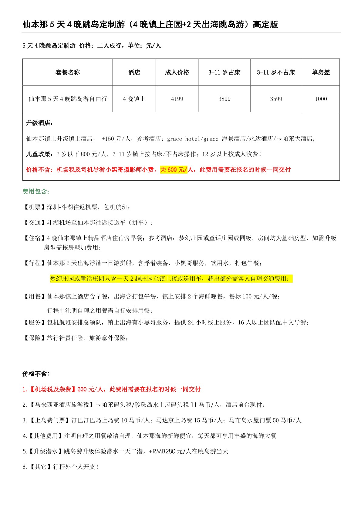 3、機場—鎮上酒店往返接送、出(chū)海跳島遊(yóu)、海鮮(xiān)晚餐,全程安排周(zhōu)到服務;