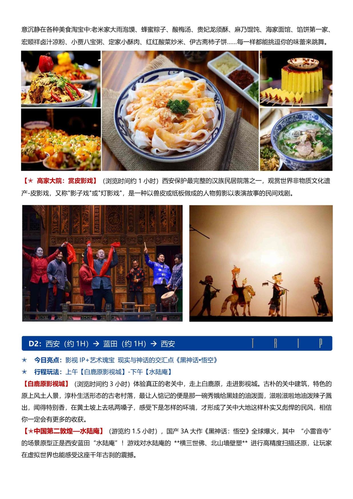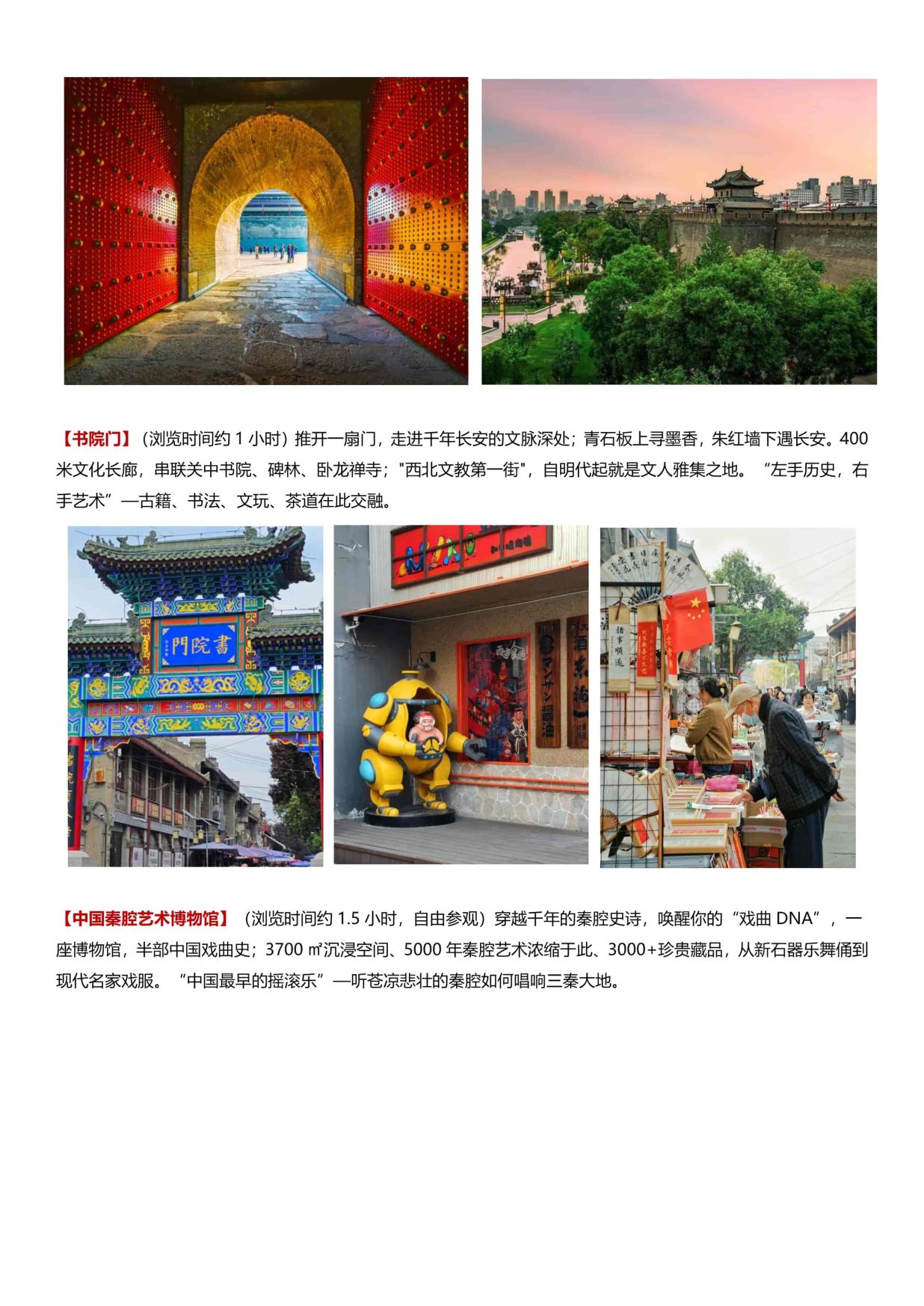 3+3 獨(dú)家體驗矩陣:3 大(dà)世界遺(yí)產(兵馬俑+大雁塔+鍾鼓樓廣(guǎng)場);3 項非遺互動(dòng)(皮影戲+秦腔+泡饃 DIY);