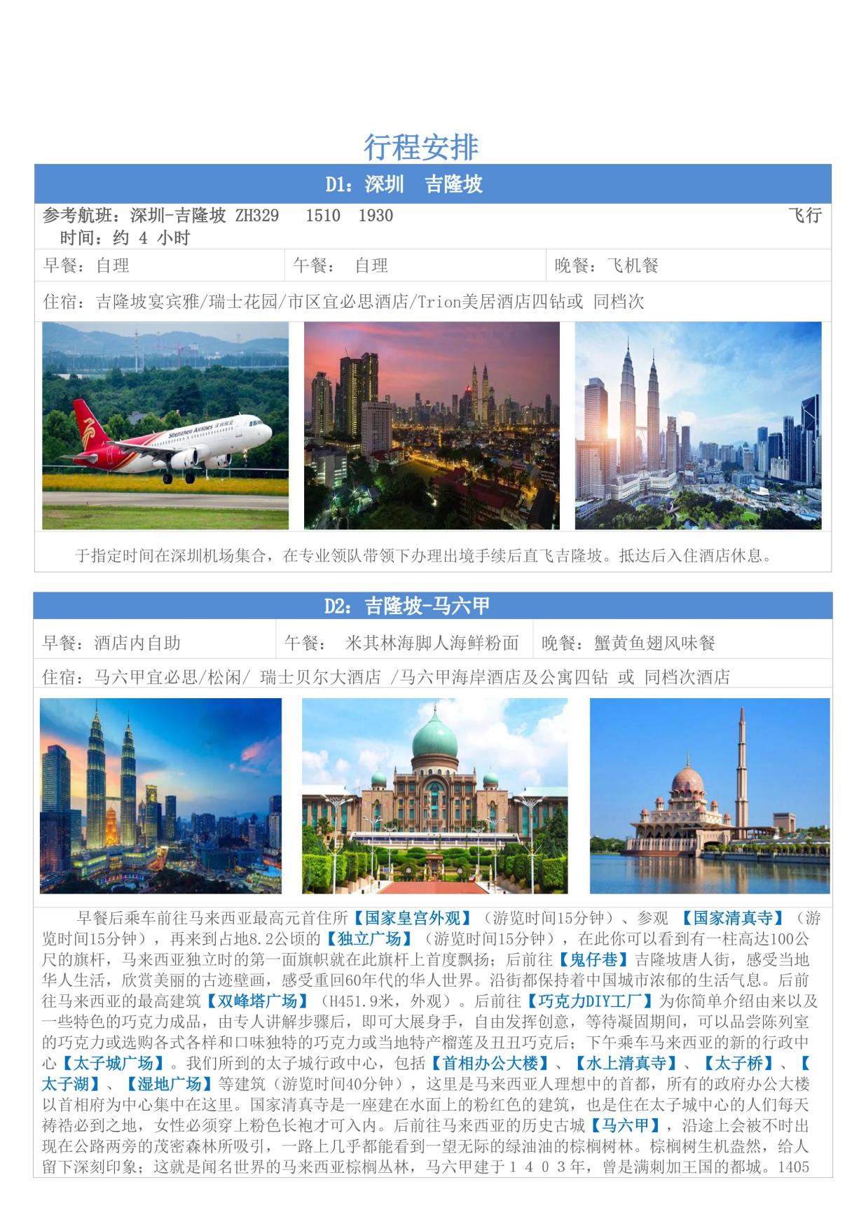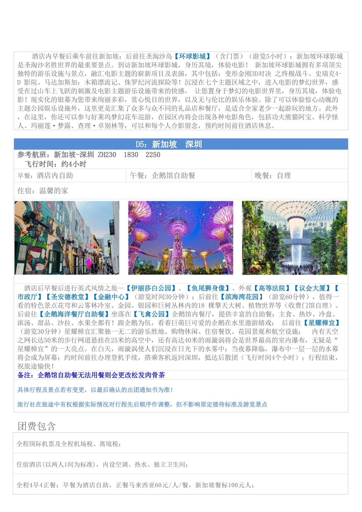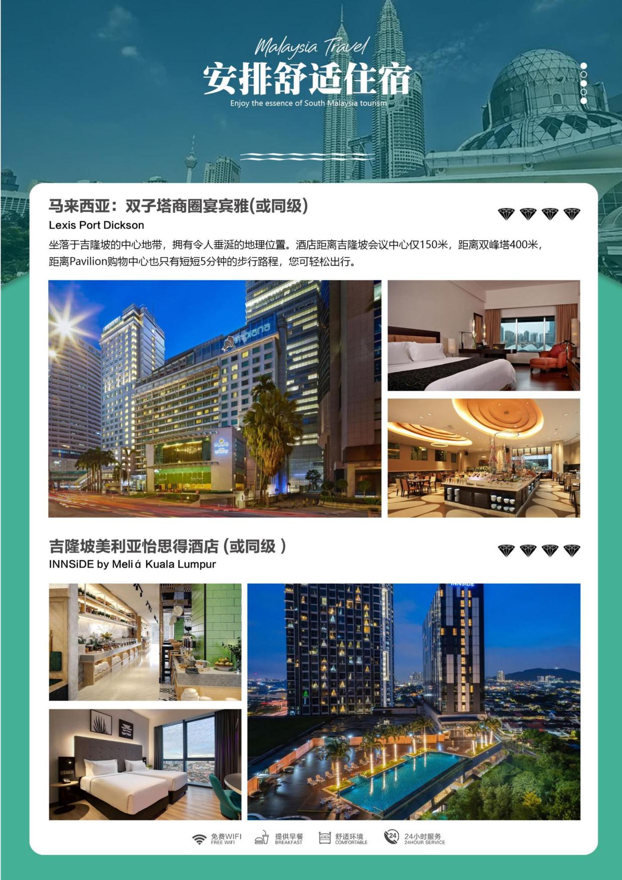 全程4早4正餐;早(zǎo)餐為酒店自(zì)助(zhù),正(zhèng)餐馬來西(xī)亞60元(yuán)/人(rén)/餐,新加坡餐標100元人; (如因無法抗拒因素原因或個人原因不用餐則不退餐費) |