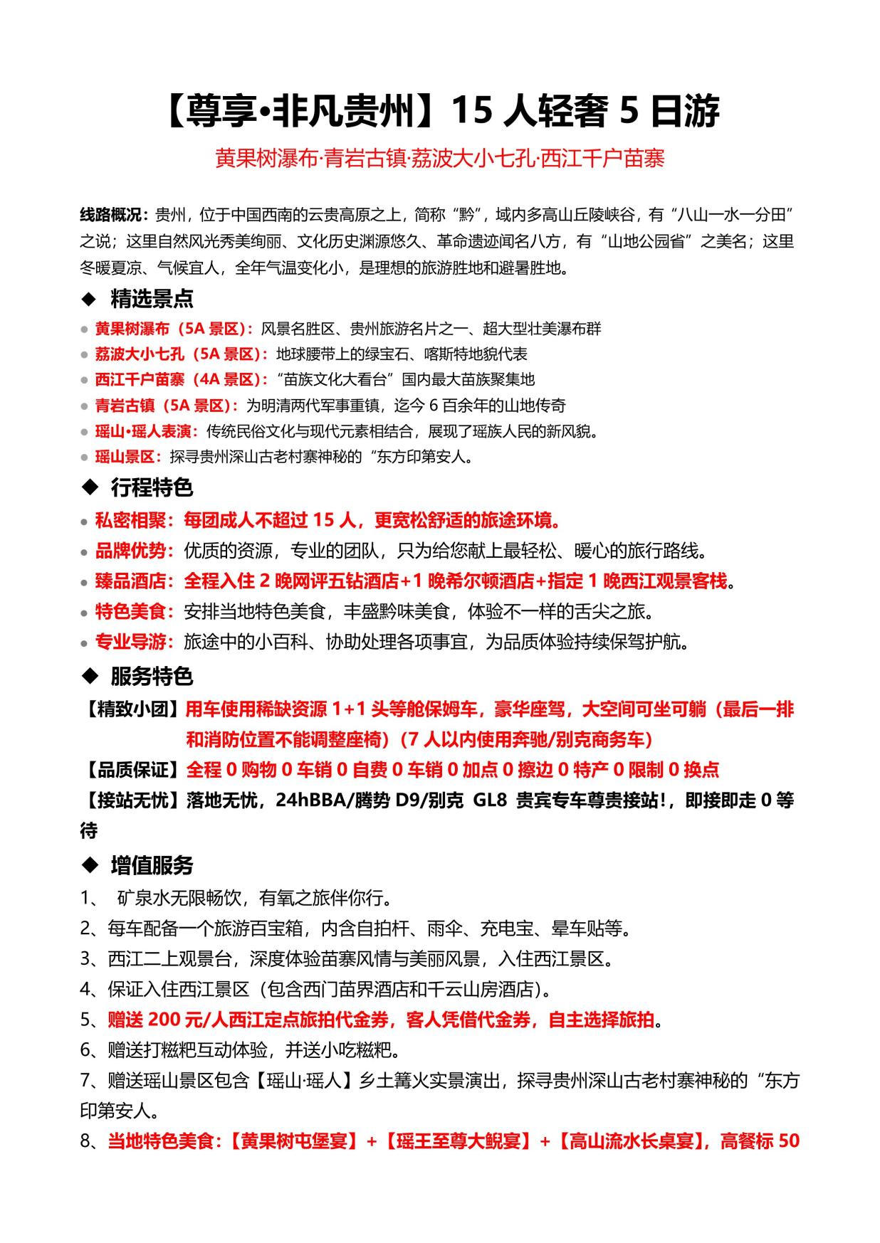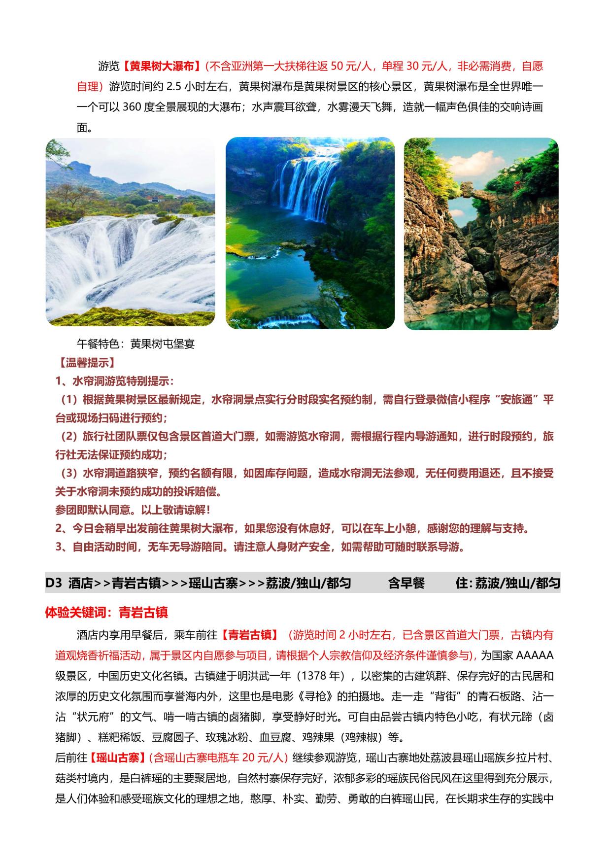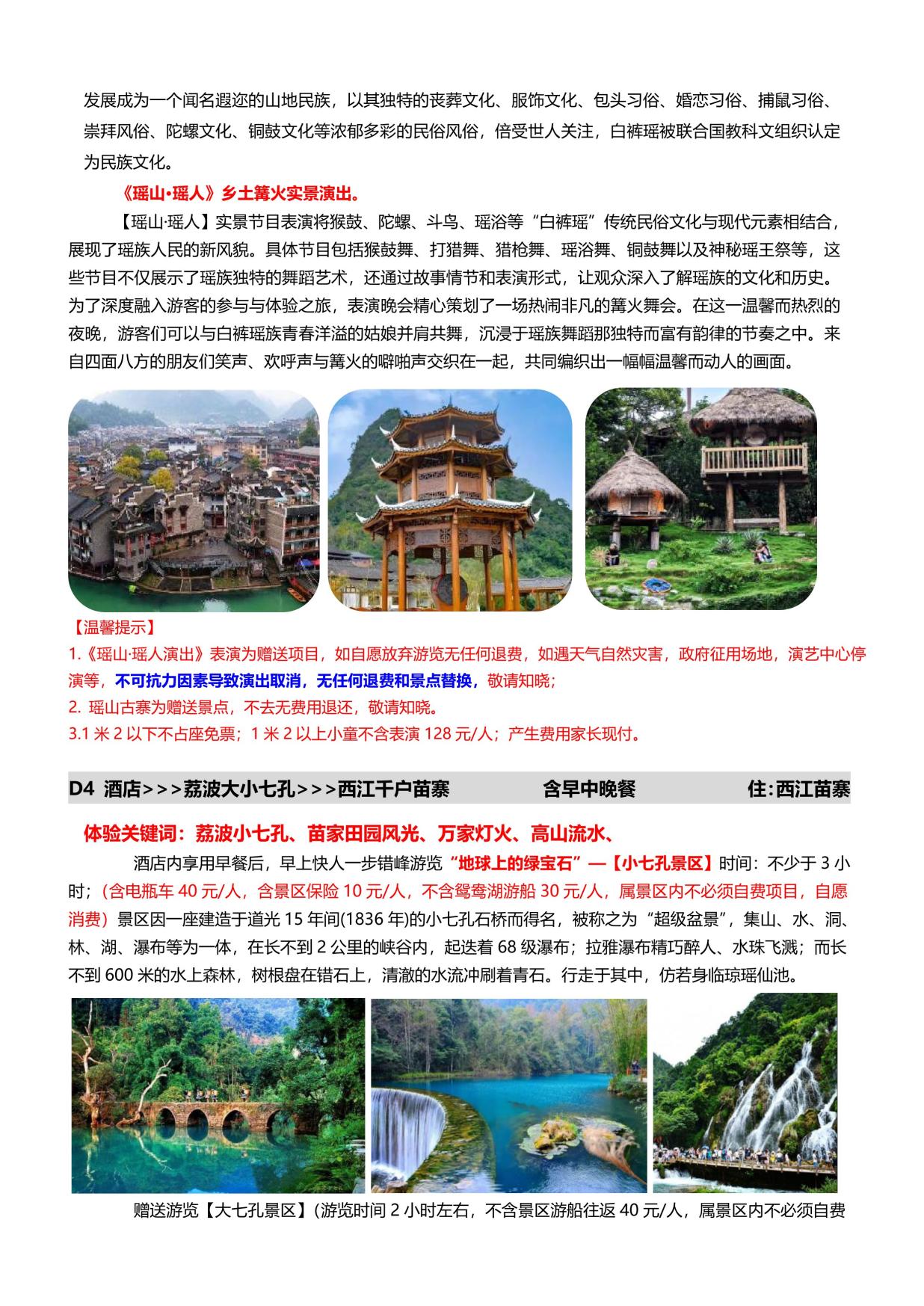 5. 門票:含黃果樹套(tào)票聯票(piào)、荔波大小七孔套票、西江苗寨門票,及三大景區內電瓶車+景區保險;