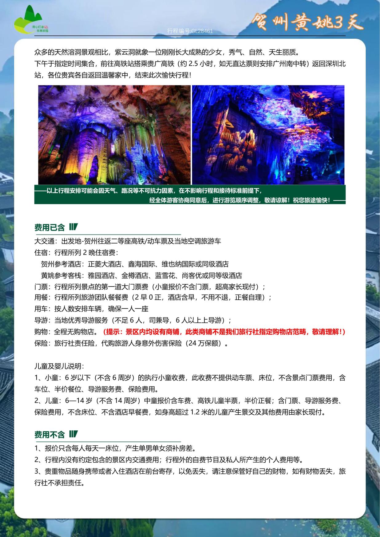 門票:行(háng)程所(suǒ)列景點的第(dì)一道大門票費(小童報價不含門票,超高(gāo)家長現付);