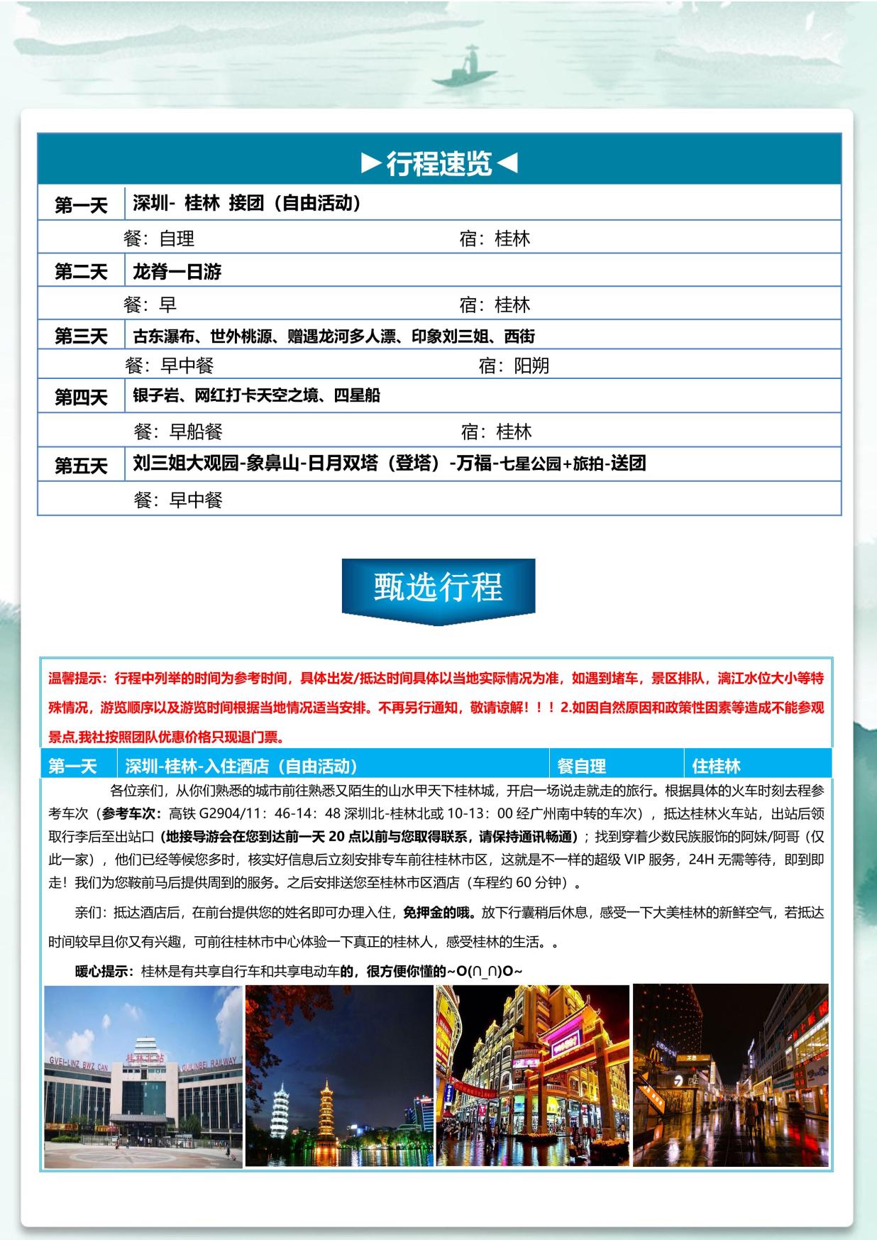旅遊交通 | 深圳-桂林往返高鐵二等座,行程內安排(pái)當地專屬用車費用(除部分特殊路段因當地規定及安全(quán)考量,則依規定派遣小型車); |