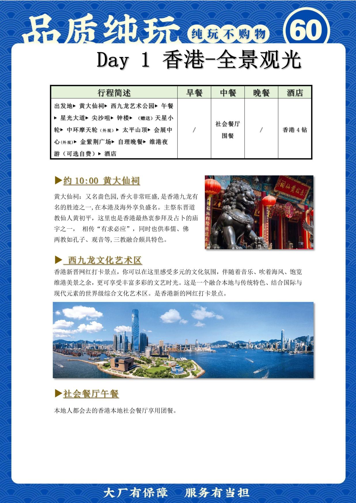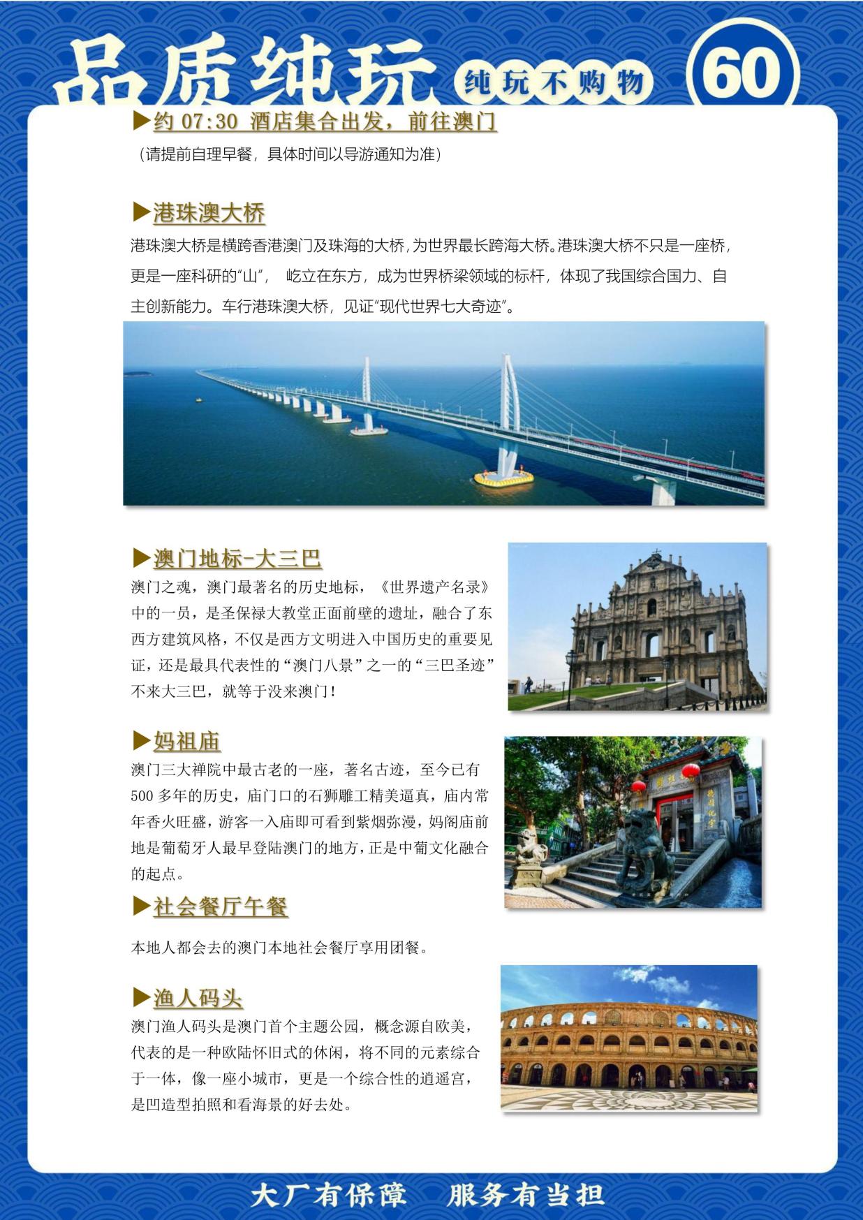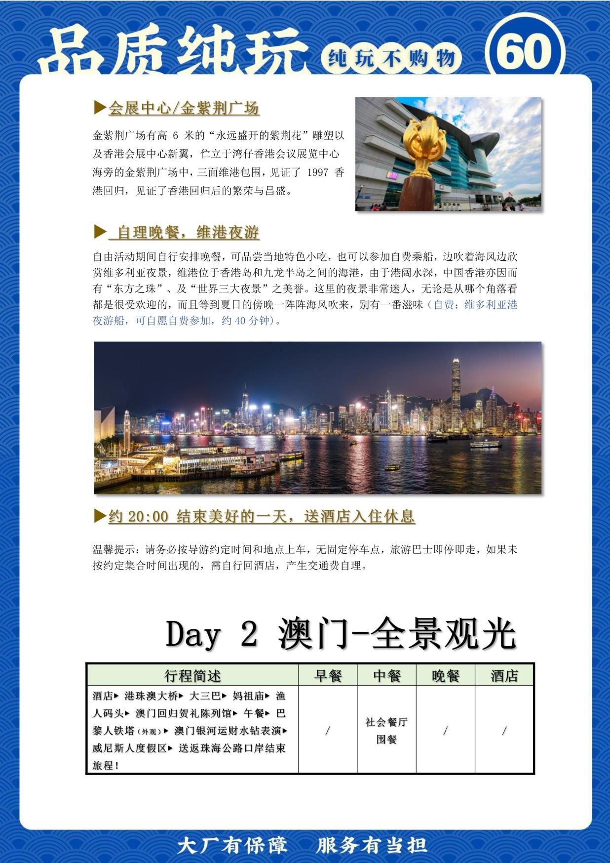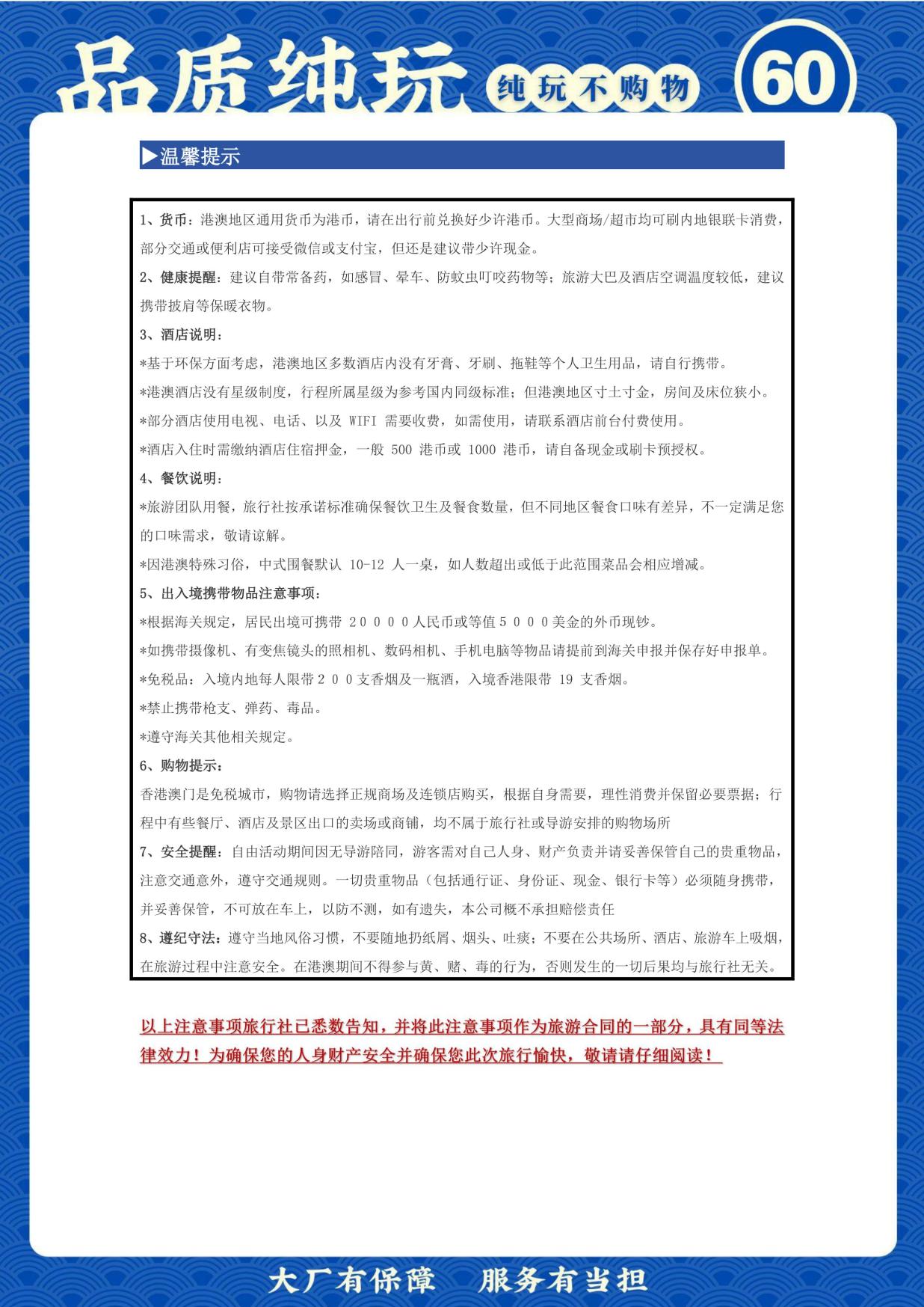 費(fèi)用 不含 | 1.行程外產生的私人費用 2.旅遊證(zhèng)件簽(qiān)注費 3.不含單人房差 4.不含珠海返回出發地交通 |