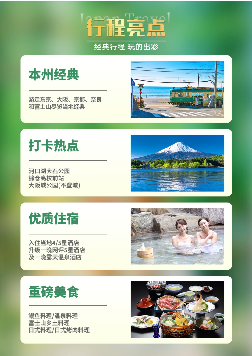 5.行程中所列(liè)團隊用餐:(午:日元1500 X3,日(rì)式烤肉料理日元2000 X1,晚:日元2000 X1)