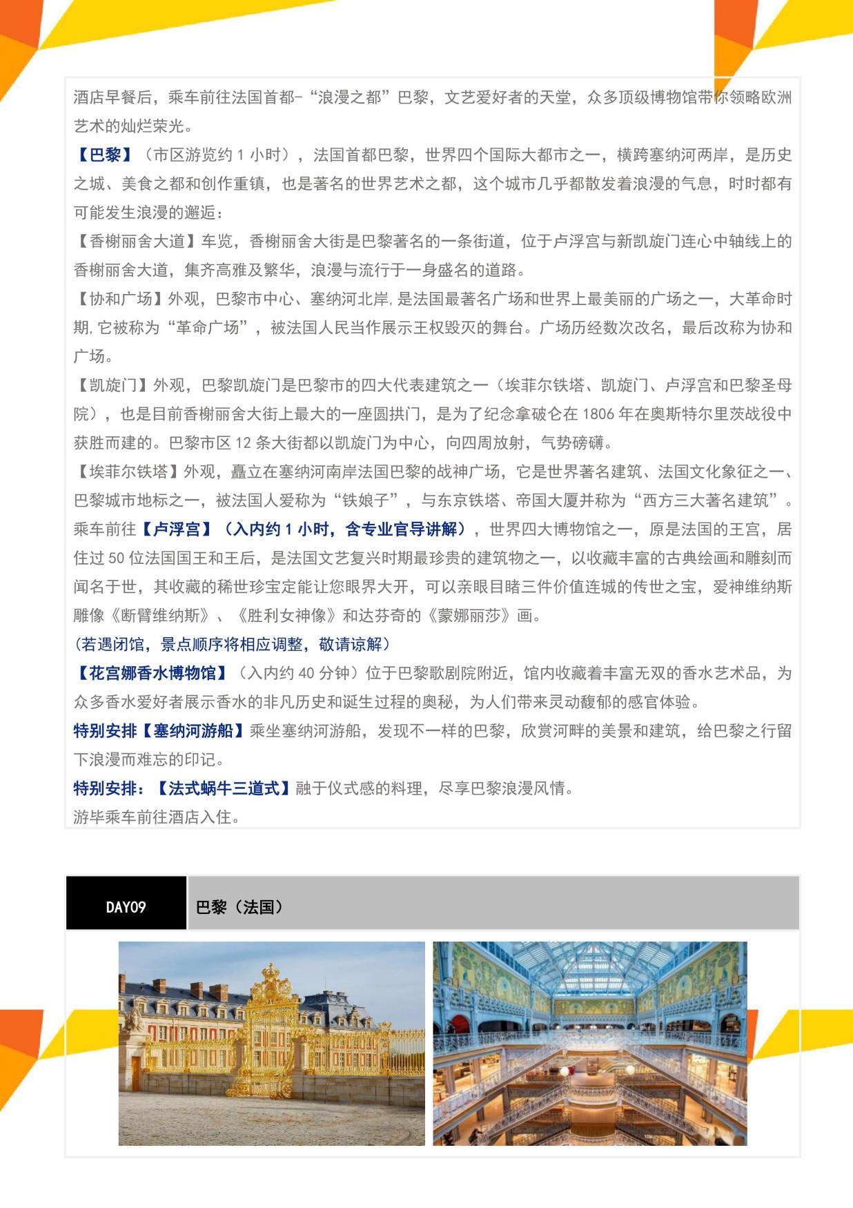 2. 全程歐洲標準三-四星(xīng)級酒店,特別升級巴黎華天酒店3晚連住(zhù),1/2標準雙人房;
